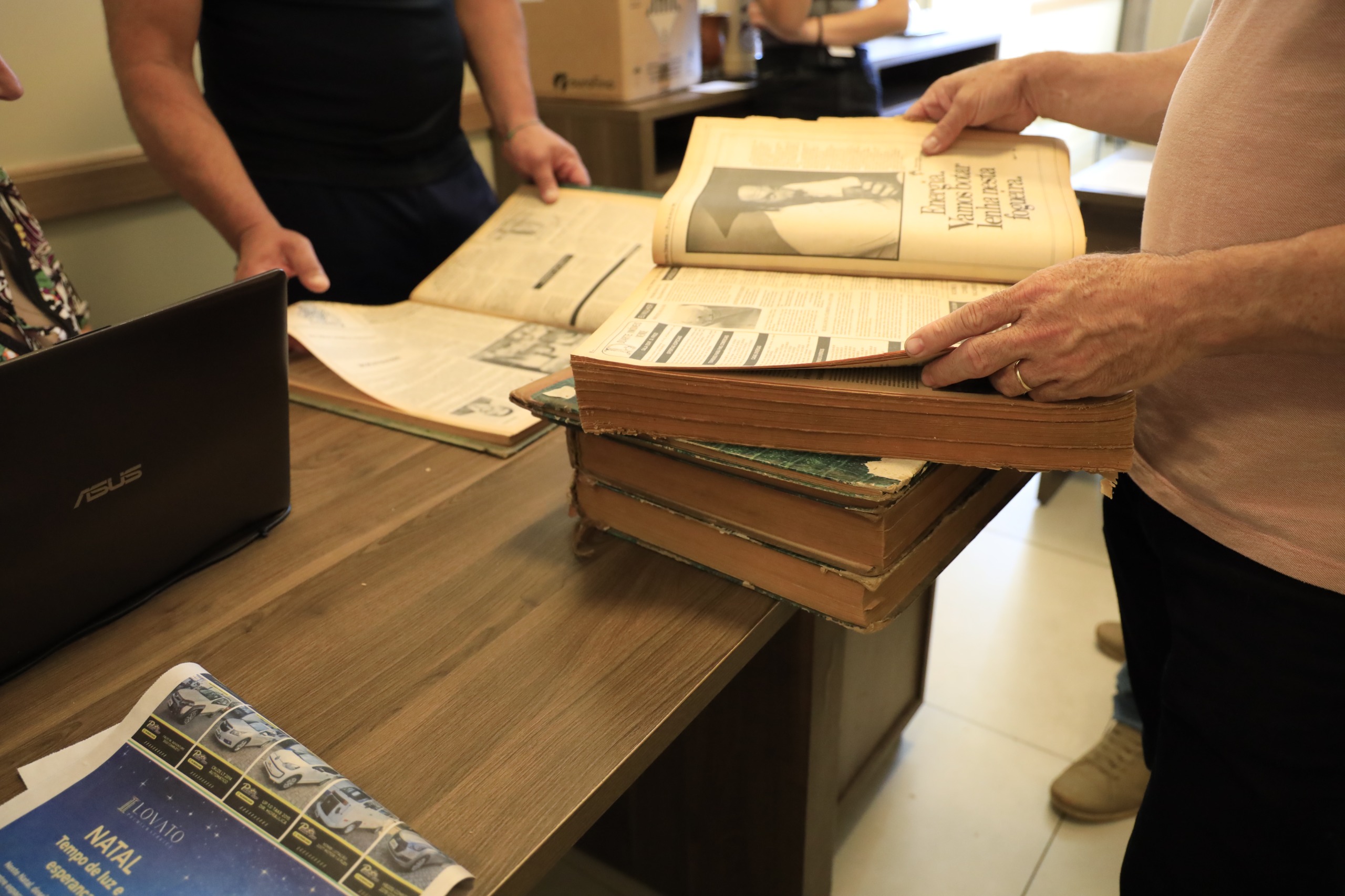 O acervo foi entregue por Francisco Delmar Kotelinski, filho do autor e organizador das obras, Francisco Kotelinski, responsável por preservar e organizar o conteúdo histórico produzido pelo jornal ao longo daqueles anos. A entrega ocorreu no gabinete do presidente eleito da Câmara, vereador Pingo Rezende, com a presença do diretor da Casa Legislativa, Enio Schinato, além do vereador Carlos Zibetti, que acompanhou o ato.