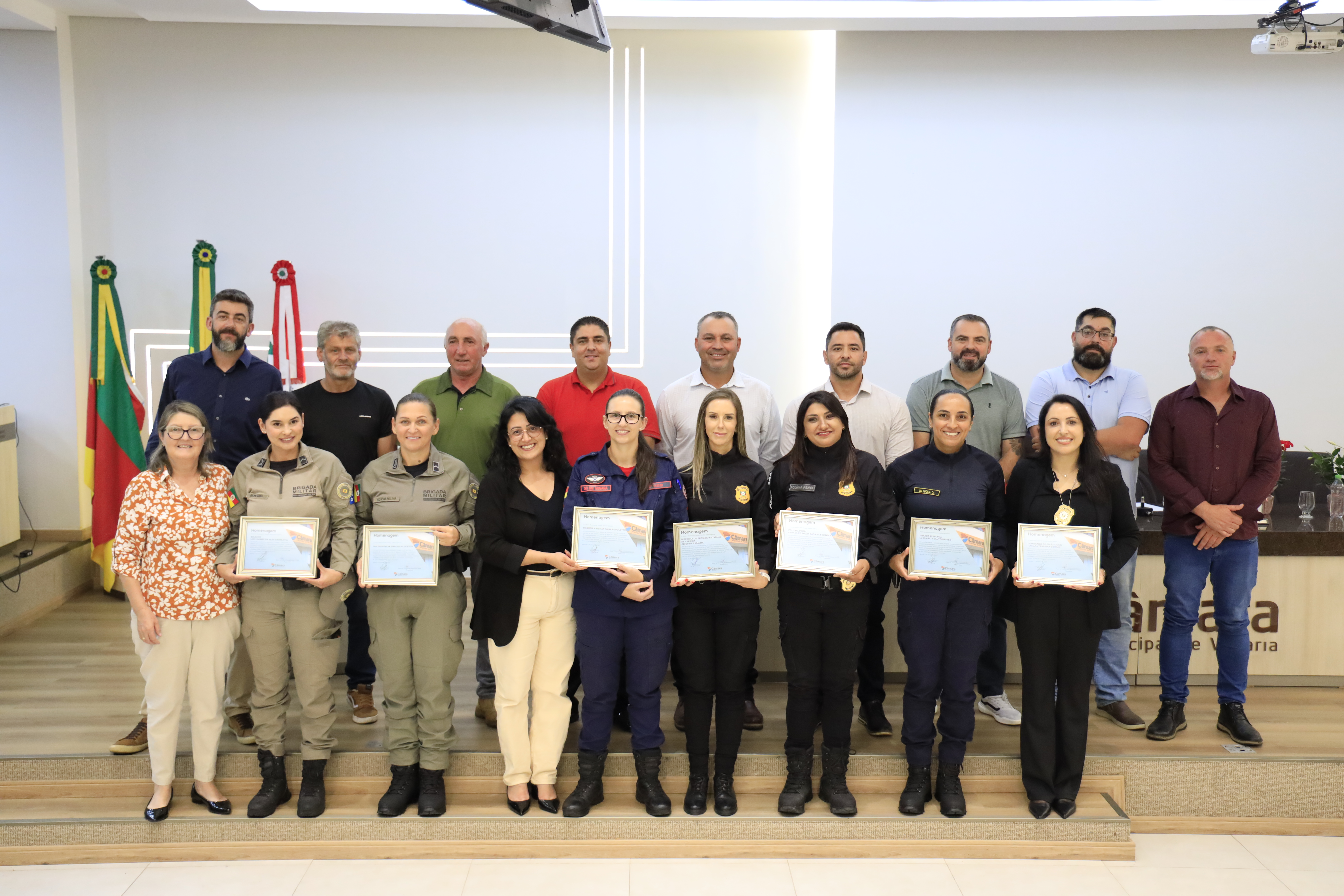 A iniciativa destacou o trabalho, a dedicação e o compromisso de profissionais que atuam diariamente na proteção da comunidade vacariense, representando diferentes instituições da segurança pública. A homenagem reuniu representantes da Brigada Militar, Corpo de Bombeiros, Polícia Penal, Polícia Civil e Guarda Municipal.
