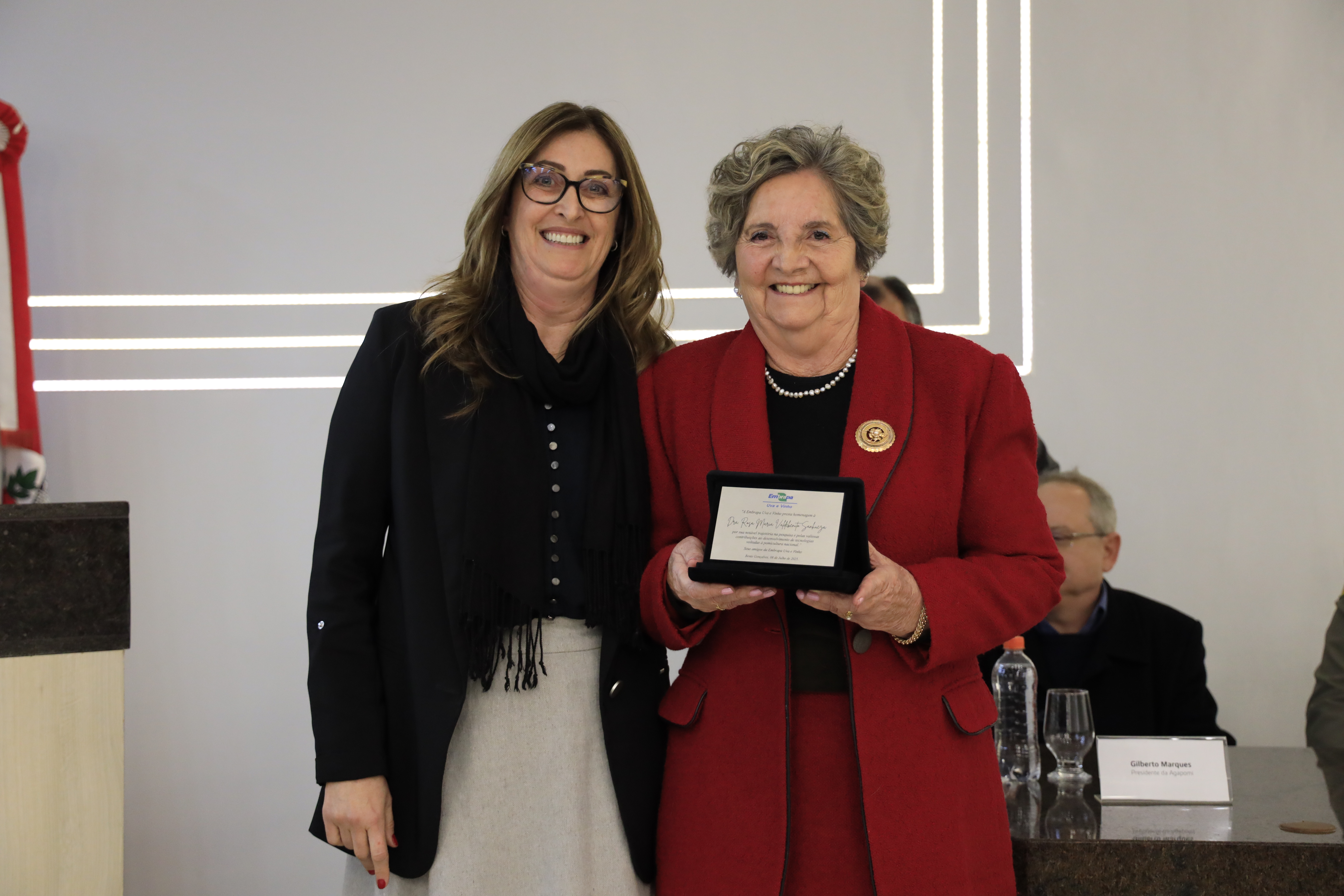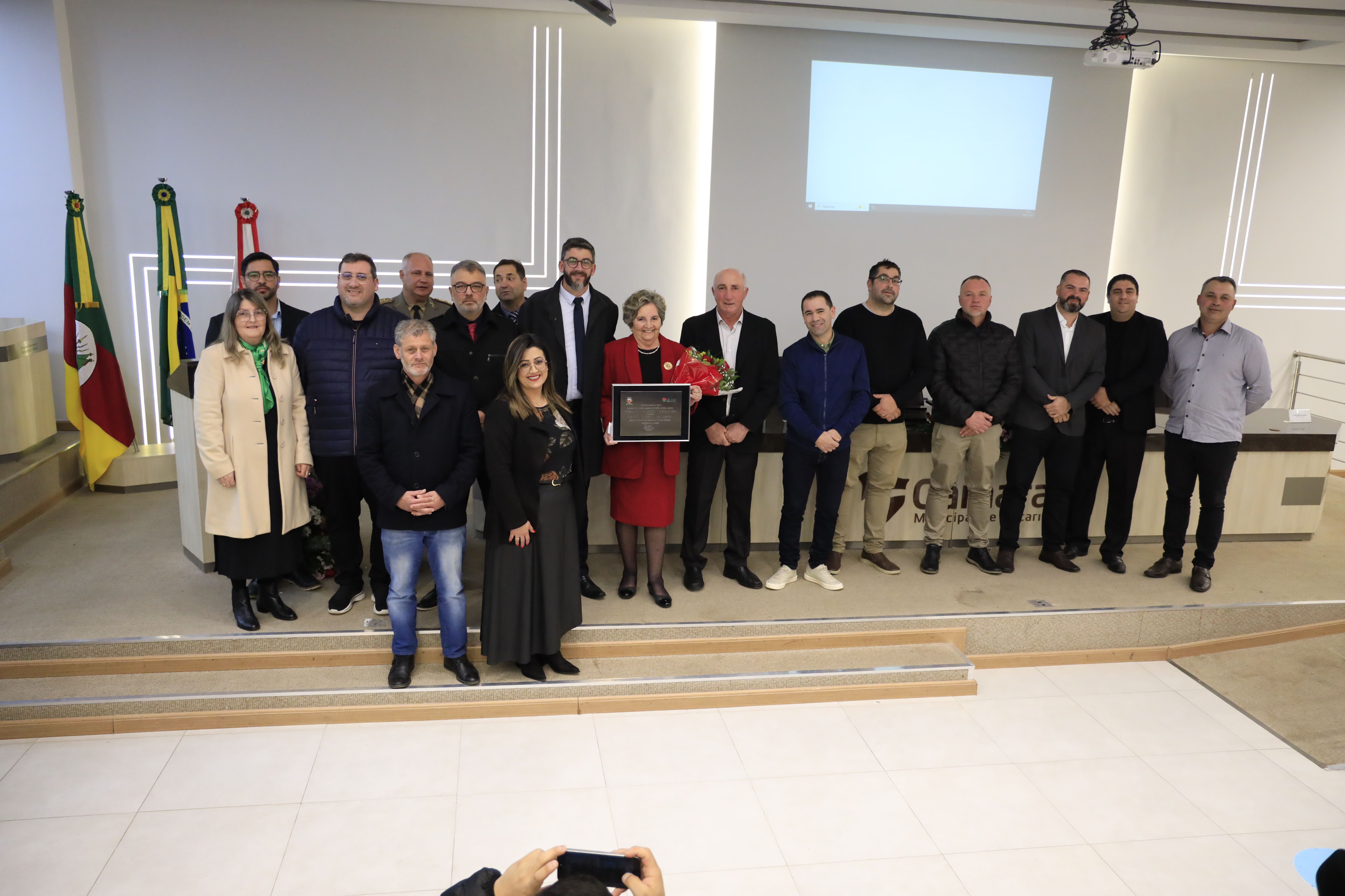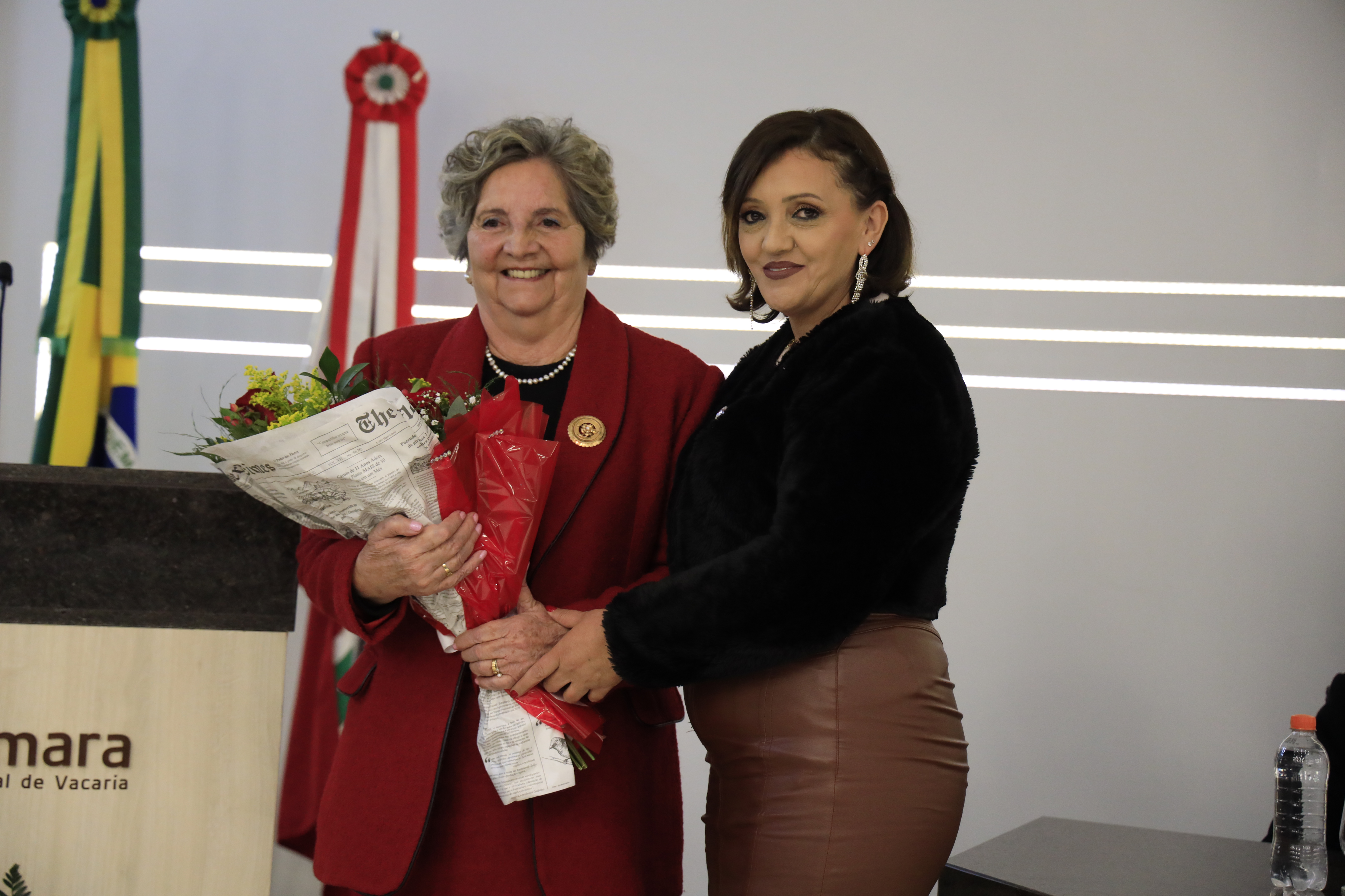 Em seu discurso de agradecimento, Dra. Rosa falou com emoção sobre sua trajetória, os desafios enfrentados e os apoios recebidos. “Essas honrarias são de todos nós. A maior parte da minha caminhada só foi possível graças à minha família, que compreendeu as ausências, e às pessoas que estiveram ao meu lado, me ajudando a cuidar da casa, dos filhos, da vida. Vacaria é uma cidade que acolhe e que me deu muito mais do que eu poderia imaginar. Ainda espero continuar trabalhando e aprendendo com todos vocês”, afirmou, sob aplausos do plenário.