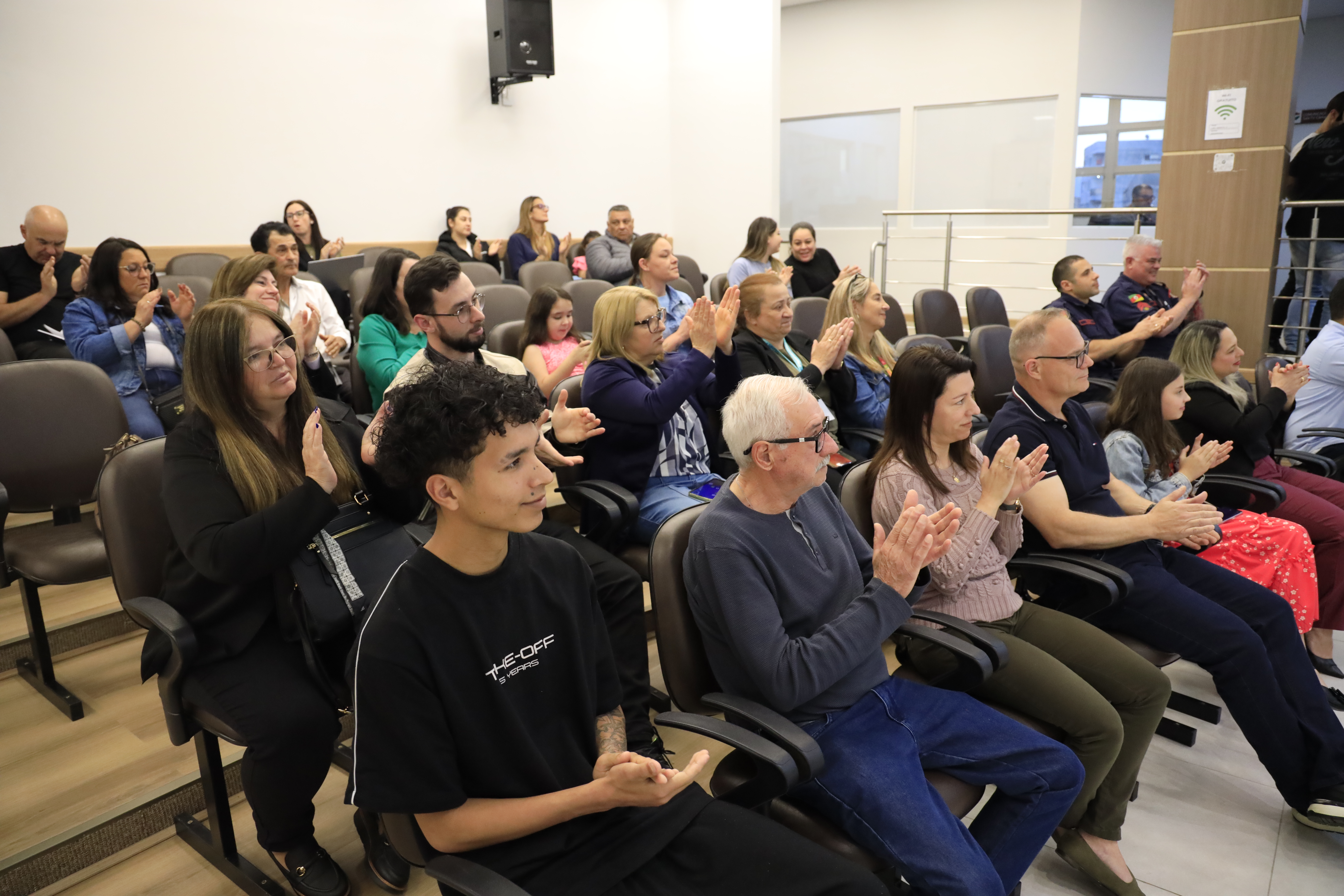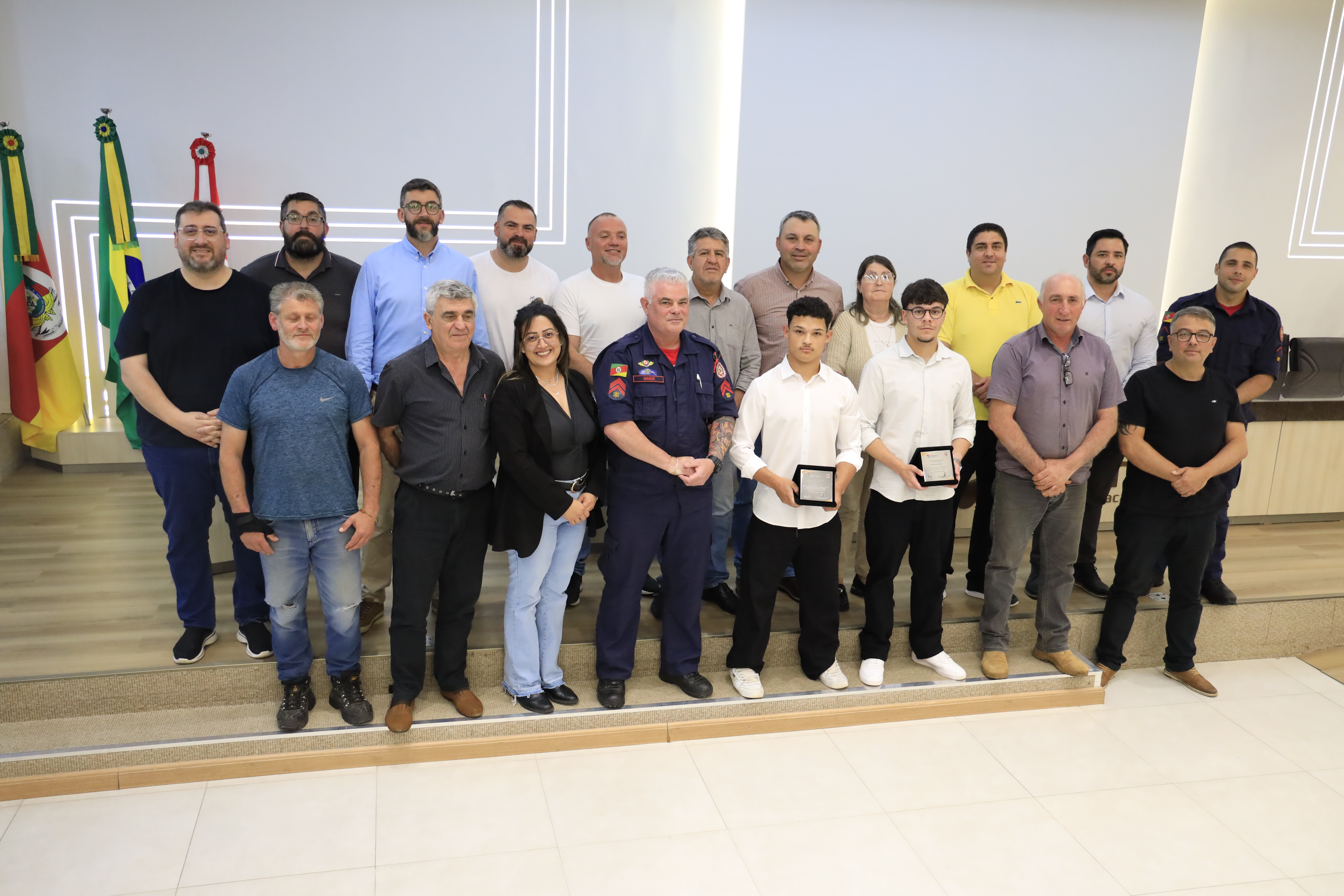Ariel e Túlio subiram à tribuna para agradecer a homenagem e relembrar o momento vivido em Porto Alegre. “O que aconteceu no dia 3 de outubro ficará para sempre em nossas memórias, não pelo susto, mas pela união. Mantivemos a calma, usamos o que aprendemos e conseguimos ajudar nossos colegas. Agradecemos a Deus, à escola, ao Corpo de Bombeiros e às nossas famílias pelos valores que nos guiam”, expressaram.