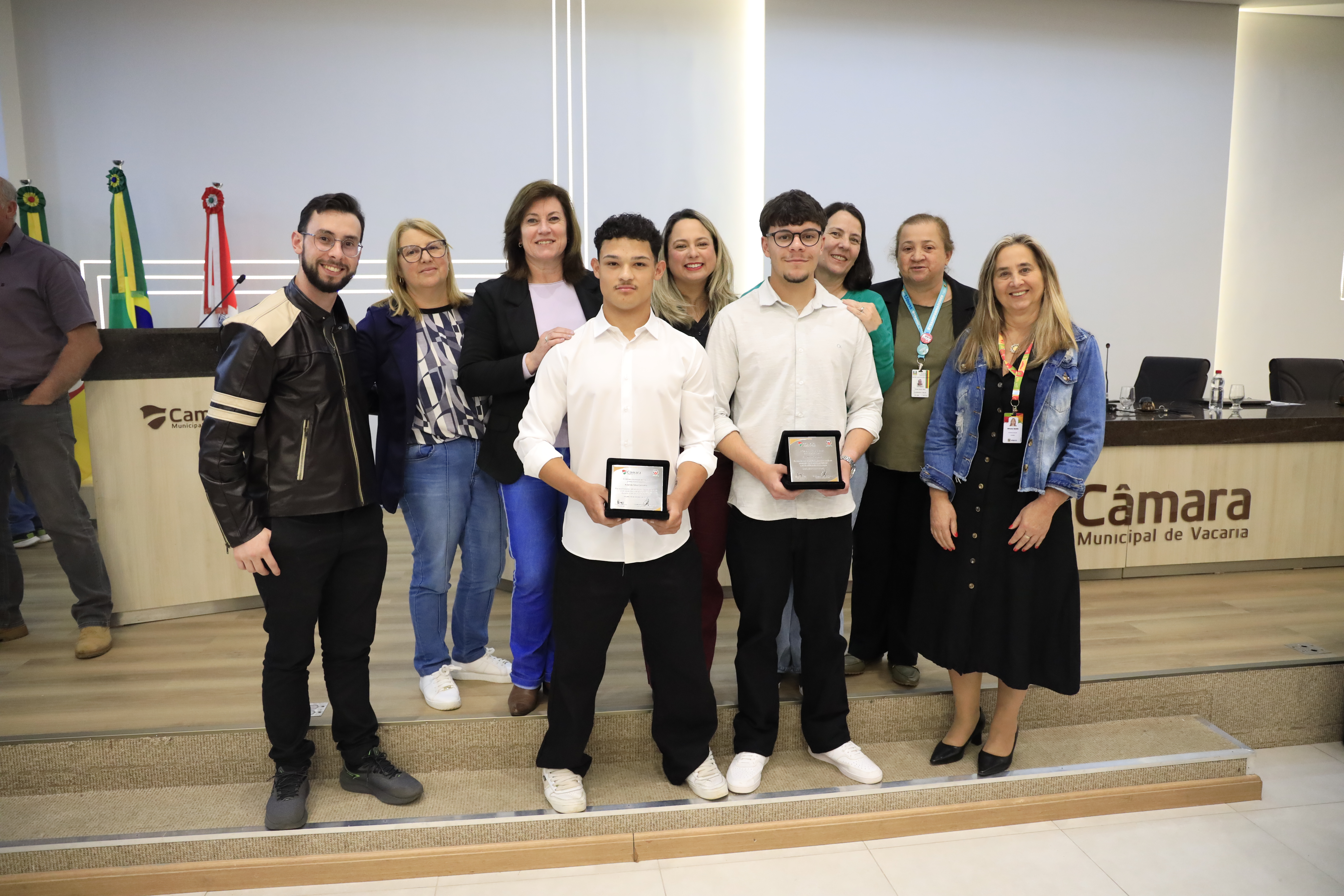 Vereadores prestou homenagem aos alunos Ariel da Silva Carvalho e Túlio Pelin Gonçalves, do Instituto Estadual de Educação Irmão Getúlio