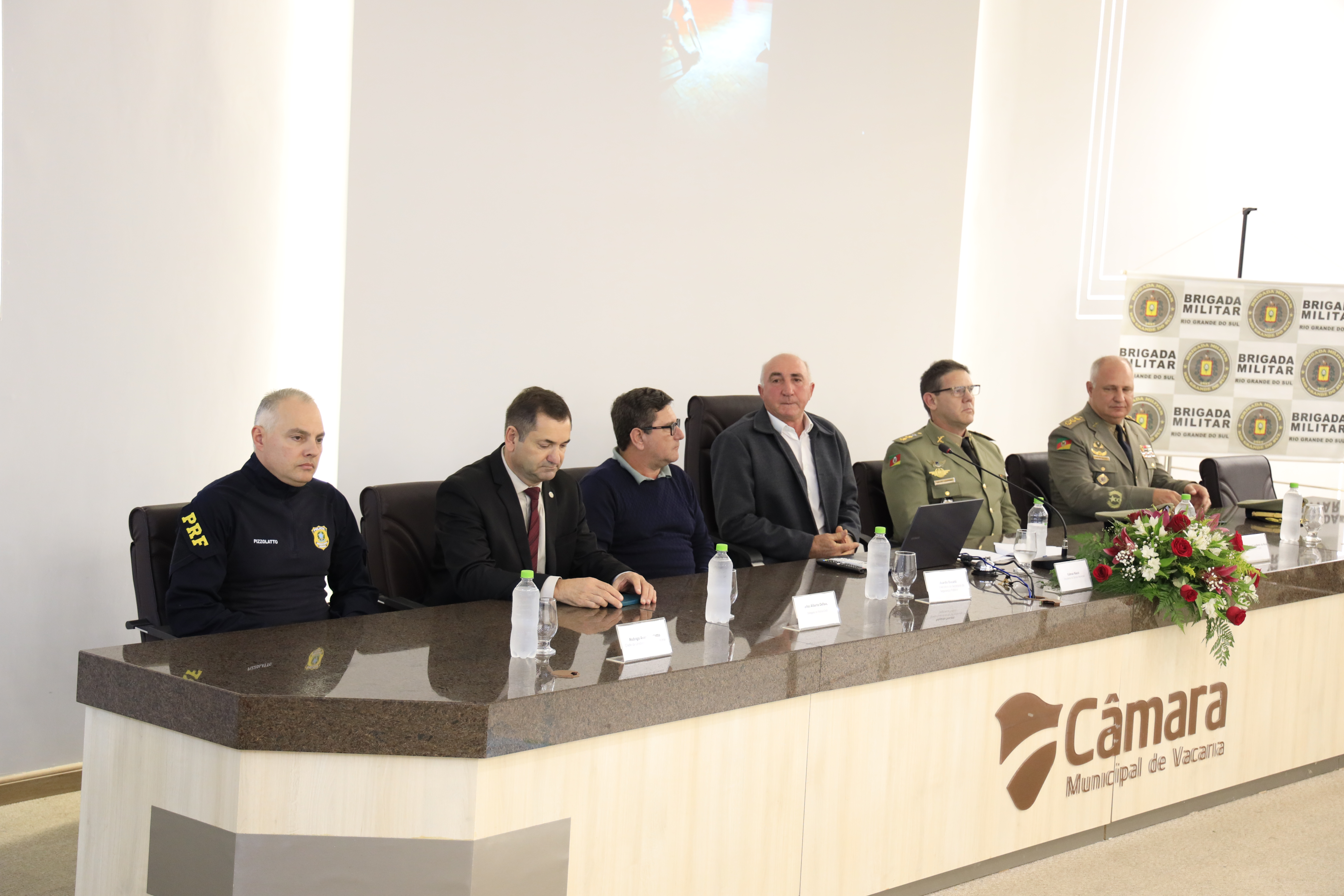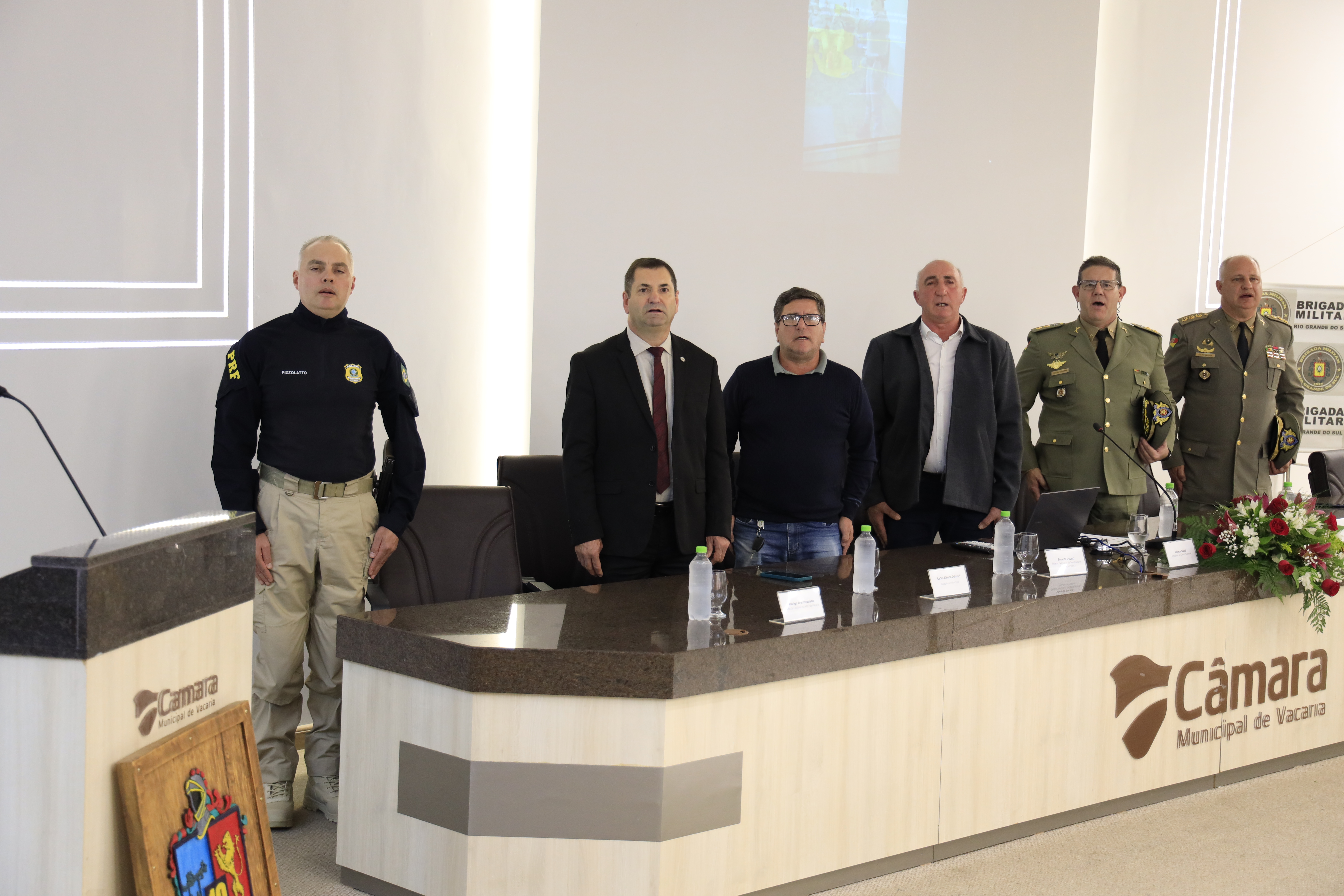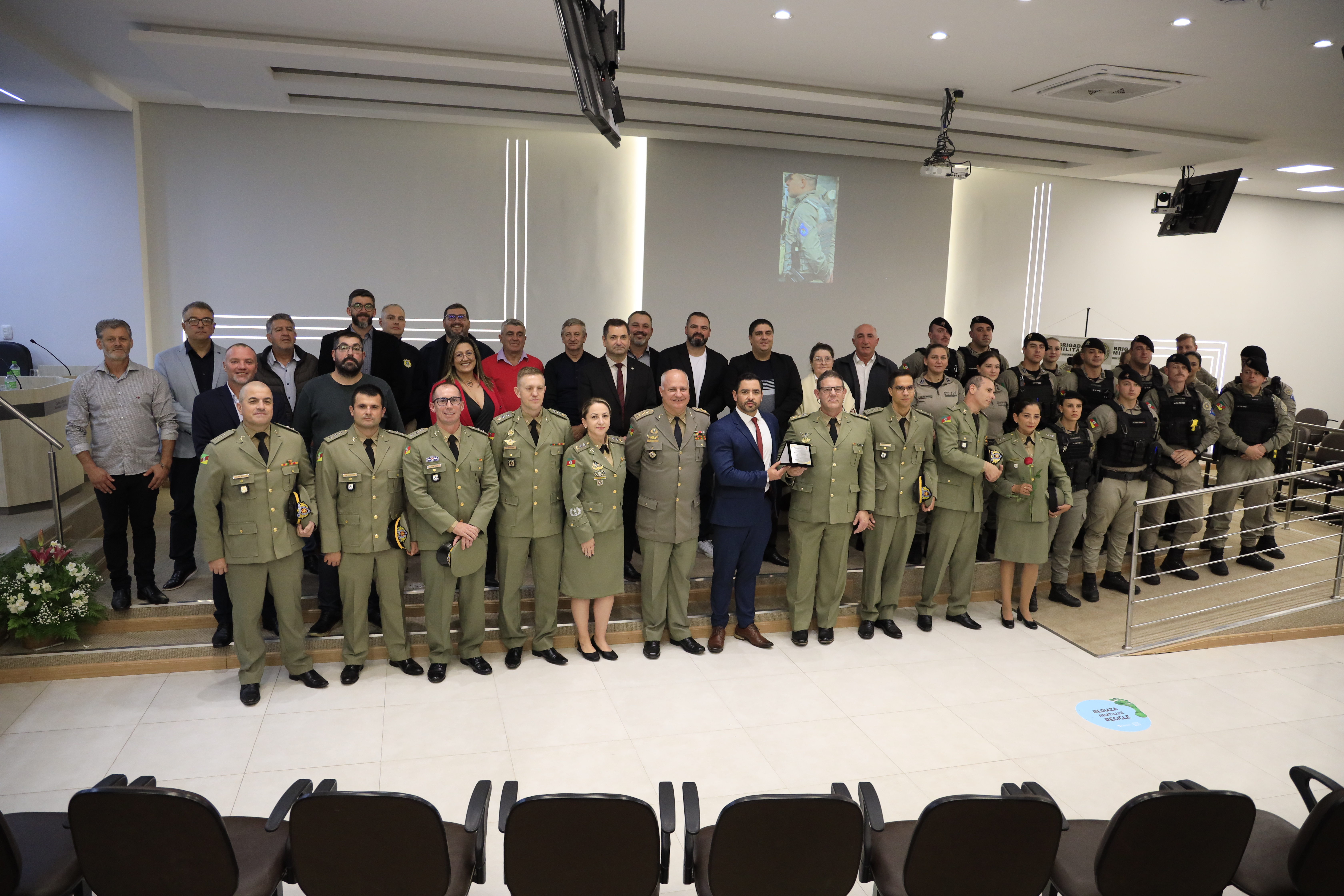 Nesta segunda-feira, 19/05, foi realizada a sessão solene em homenagem aos 55 anos do 10º Batalhão de Polícia Militar de Vacaria. O autor da proposta foi o vereador George Pires (PP). Em seu discurso, ressaltou que 12 de maio, para Vacaria, é mais que uma data no calendário, é um marco de respeito, bravura e compromisso com o município. O comandante do 10º BPM, tenente-coronel Laudemir da Rosa Gomes, fez um agradecimento pela homenagem, salientou o papel da Brigada Militar na comunidade e realçou o trabalho de integração com as demais forças de segurança.