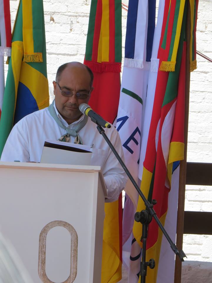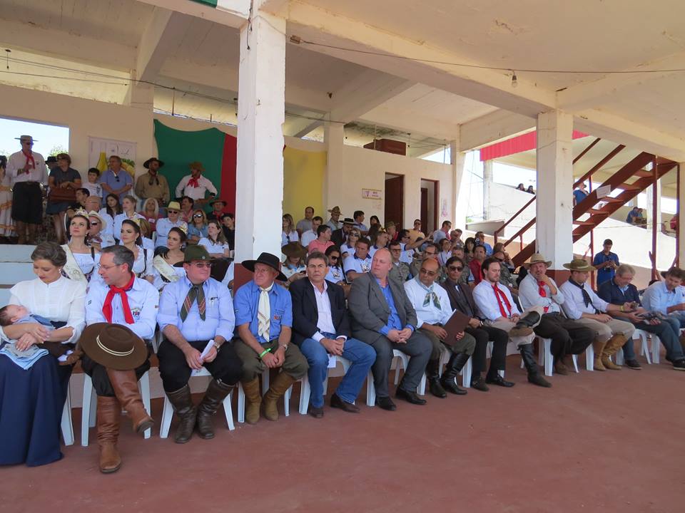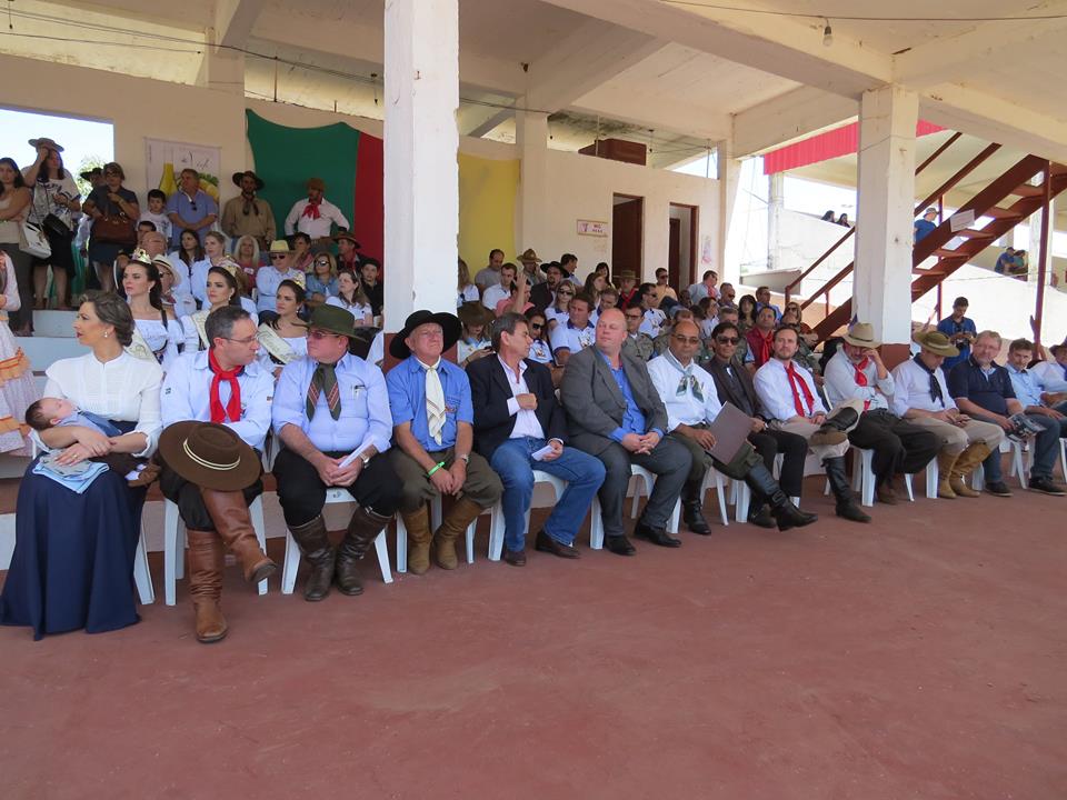 Queremos neste momento fazer uma saudação; a todos os presentes, e de forma especial saudar a todas as ntidades tradicionalistas, ao MTG, CTGs, Piquetes, Quadro, de Laçadores, Grupos de Cavalgada, Delegações, Caravanas e a cada um dos competidores das diversas provas artísticas e campeiras deste Rodeio; Símbolo Máximo da cultura gaucha reunida em um só lugar.