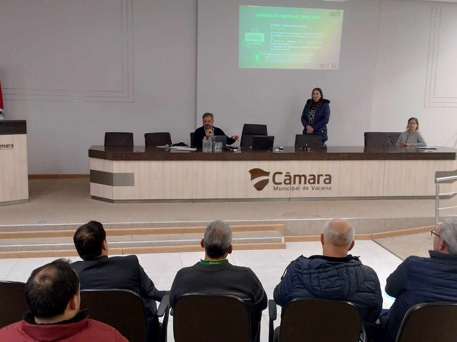 Com o objetivo de fortalecer a participação cidadã nas decisões sobre investimentos públicos, foi realizada nesta terça-feira,22/07, a Assembleia Inicial da Consulta Popular 2025 da região dos Campos de Cima da Serra. A atividade realizada no plenário da Câmara de Vereadores de Vacaria, foi coordenada pelo presidente do Corede, Adair Adams, e marcou a segunda etapa do processo, que se estende até o mês de outubro em todo o Estado.