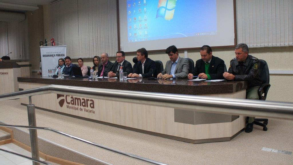 A audiência contou com a presença do Presidente em Exercício da Câmara Municipal de Vacaria Ver. Aldo da Silva(PT), do Secretário Municipal de Desenvolvimento, Trabalho e Turismo Mário Lourencetti Almeida que representou o Prefeito de Vacaria, Amadeu de Almeida Boeira, o Comandante do 10º BPM, Major Fabiano Domênico Paim, o Delegado Regional de Polícia, Carlos Alberto Defaveri, a representante do Ministério Público Bianca Acyoli Araújo, a Defensora Pública, Débora Azambuja Santos, o Diretor da Guarda Municipal de Vacaria Tobias Preto, o Diretor de Assuntos de Segurança Pública de Vacaria Júlio Zingali, a delegada Penitenciária Marta Bitencourt da 7ª Delegacia Penitenciária Regional (7ª DPR), o Diretor do Presidio Estadual de Vacaria Jorge Rodrigues, o representante do Corpo de Bombeiros, Sargento Mayer, o prefeito de André da Rocha, Sérgio Moretti, a representante da Amucser, Adriana Tieppo, os representantes da OAB, Subsecção Vacaria, Rodrigo Toledo da Silva Rodrigues e Matheus Cunha, o Presidente do Conselho Municipal Sobre Drogas Comissário João Carlos Pinto de Abreu, a representante do Instituto Geral de Perícias (IGP) Suelen Oliveira Abreu, o Presidente do Sindilojas Antonio Dutra, a representante da Câmara de Dirigentes Lojistas(CDL) Pauliane Biazus Soranso, o Presidente da Câmara da Indústria Comércio, Agricultura e Serviços, Paulo Vasques, o representante da Associação dos Policiais Rodoviários Federais do RS, Rodrigo Pizzolatto, o representante da Associação Gaúcha dos Produtores de Maçã, José Sozo, o Vice-Presidente da Câmara de Vereadores de Lagoa Vermelha Bráulio Guedes, os vereadores de Vacaria Marcos Lima(PTB), André Luis Rokoski(PMDB), Marcelo Dondé(PP) e Moacir Bossardi (PSDB).
