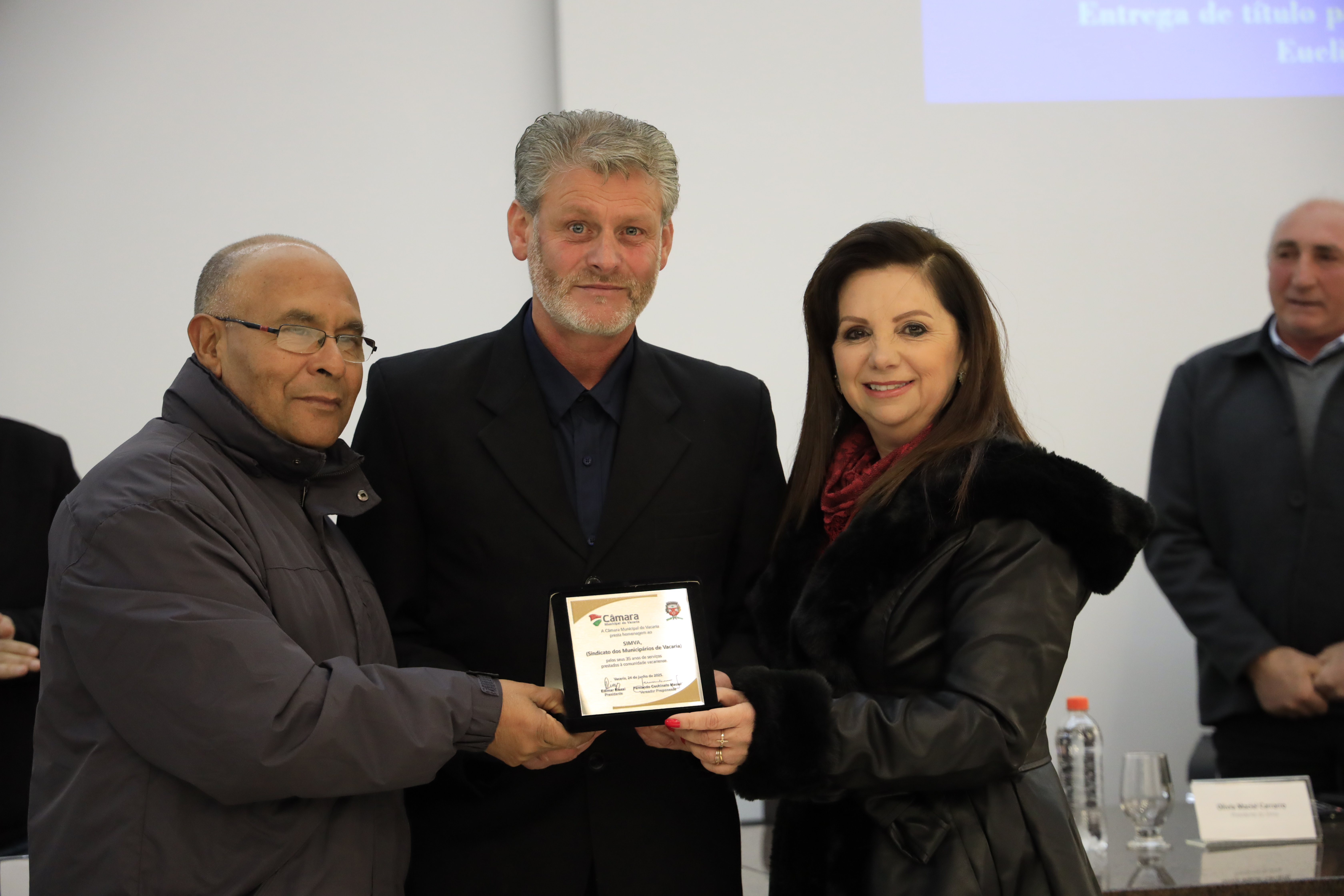 Vereador Cechinato fez a entrega da menção honrosa | Crédito: Saulo Vargas