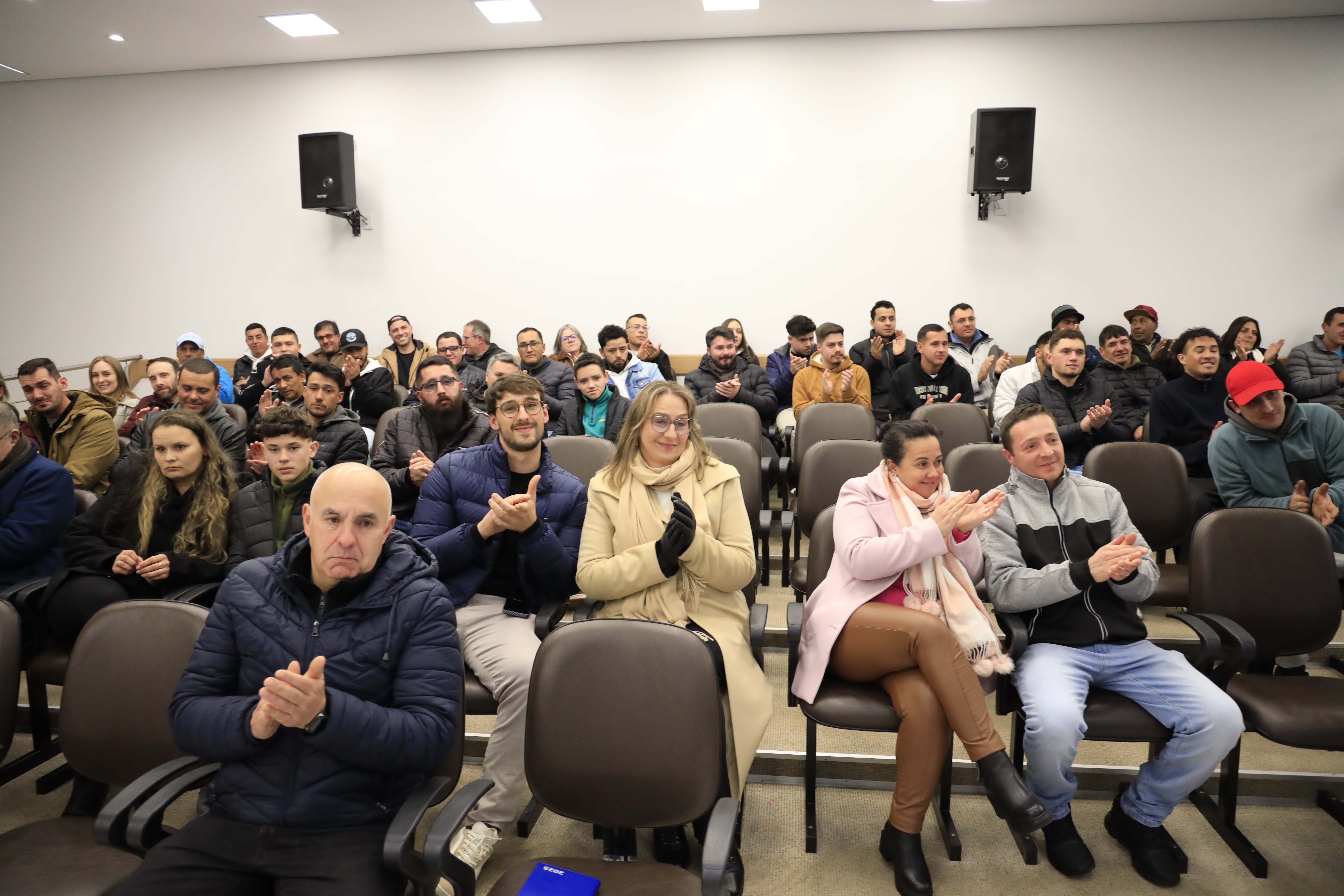Durante seu pronunciamento, o vereador Cechinato destacou a importância histórica e simbólica da luta sindical. “São 35 anos de lutas e conquistas. O SIMVA carrega em sua história batalhas que muitas vezes começaram antes mesmo de imaginarmos ocupar um mandato ou liderar a entidade. Toda luta, mesmo quando traz derrotas, carrega ensinamentos. O verdadeiro derrotado é quem foge da luta”, afirmou o parlamentar. Fernando também parabenizou a nova diretoria do sindicato e reforçou o apoio do Legislativo vacariense às pautas do funcionalismo público: “Conduzir um mandato ou presidir uma entidade não é tarefa fácil. Mas é necessário coragem. Sigam contando conosco, em todas as esferas, por mais valorização e respeito ao servidor”.