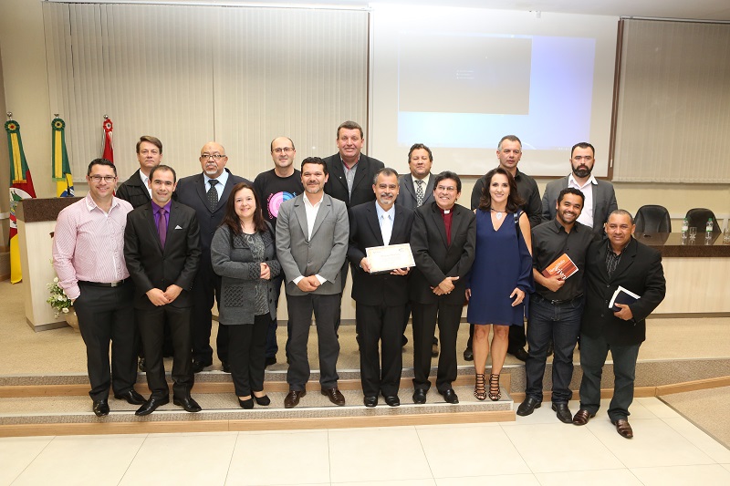 A solenidade na Câmara Municipal contou com a manifestação do presidente da Amev, Pastor Maciel Costa da Igreja O Brasil para Cristo, do Pastor José Erone da igreja Nova Aliança, do líder da bancada de situação, vereador André Luis Rokoski (PMDB), do líder da bancada de oposição, vereador Osvaldo Grigolo Júnior, da representante da Ordem dos Advogados do Brasil e ex vereadora Elisabete Ritter de Vargas Silva e do representante do Poder Executivo Senhor Clodoaldo Rodrigues.