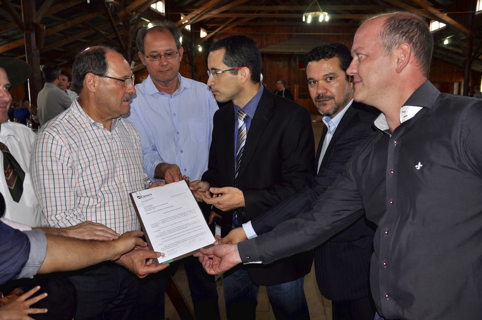 Juntamente ao Governador José Ivo Sartori, estavam presentes no CTG Porteira do Rio Grande, o Presidente da Comissão de Segurança Pública Deputado Ronaldo Santini e o Relator Vilmar Zanchin.