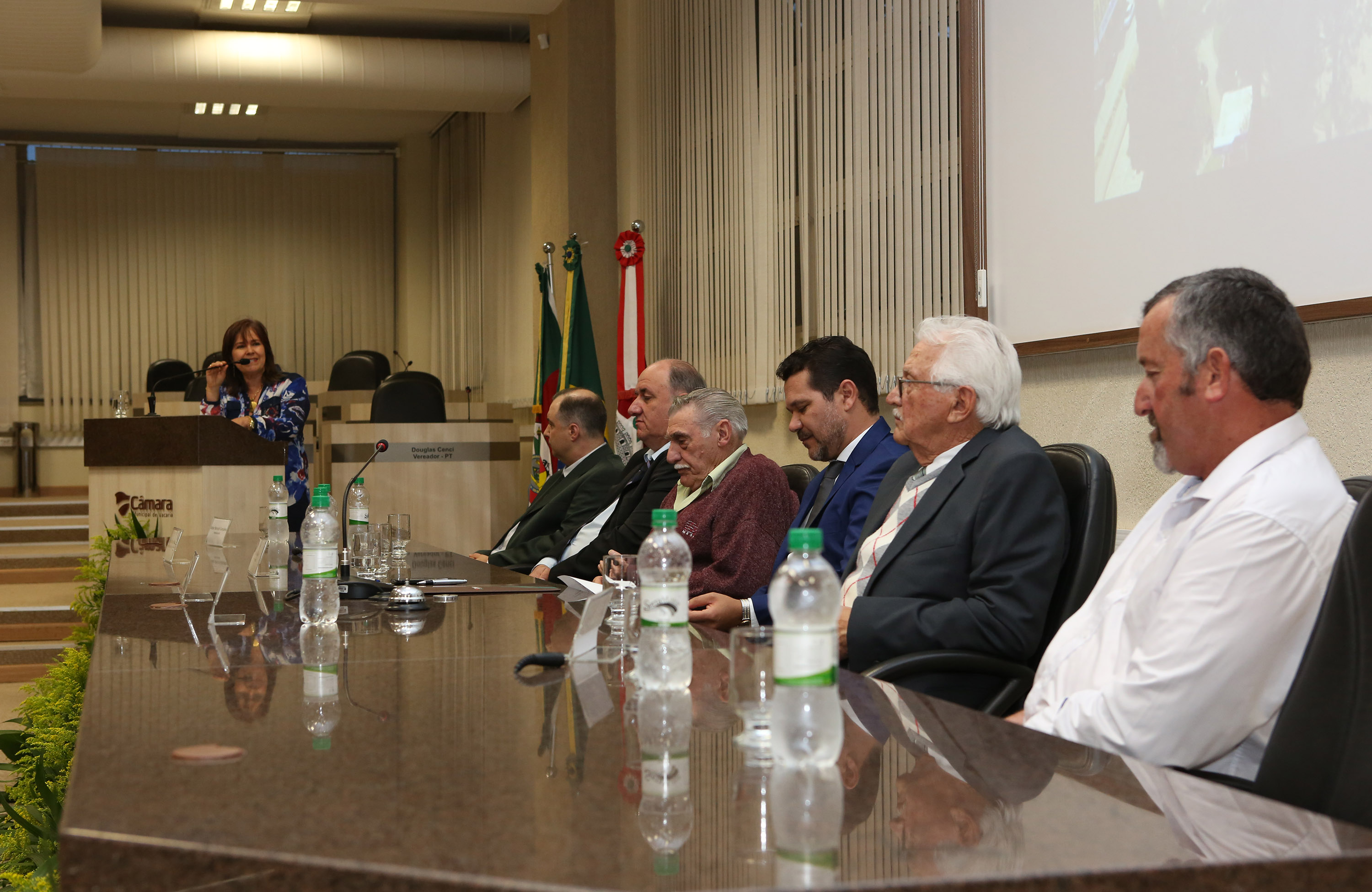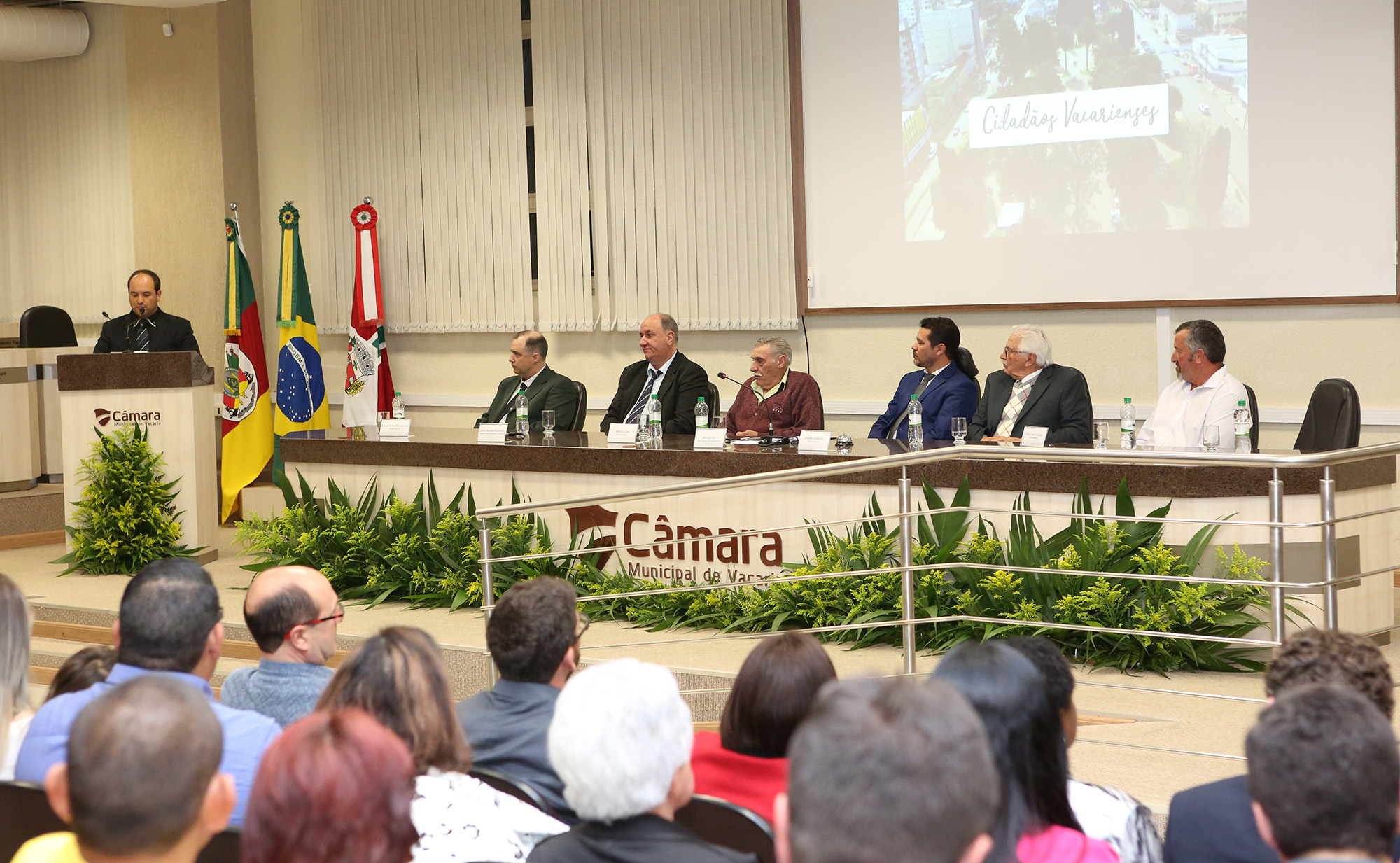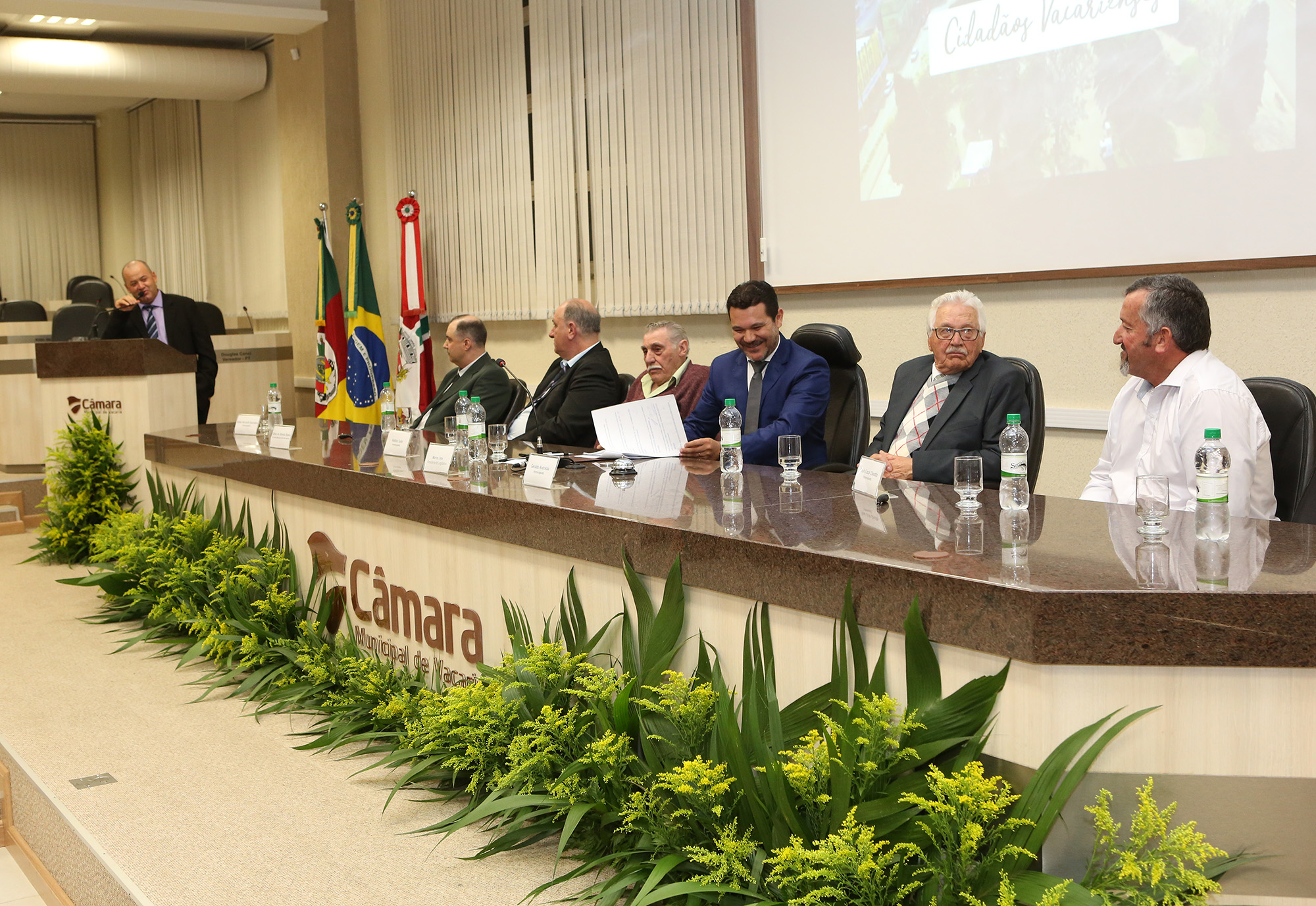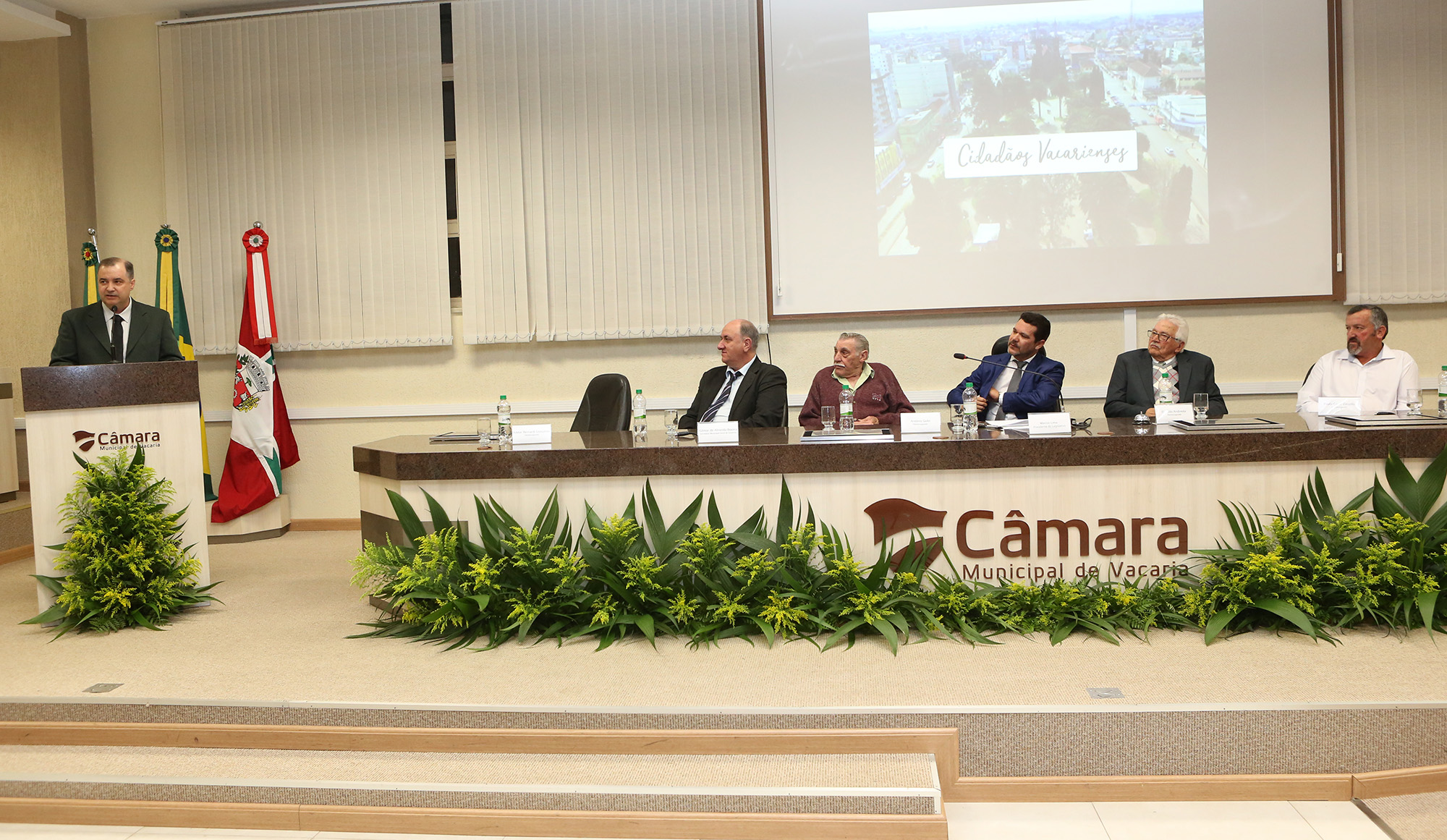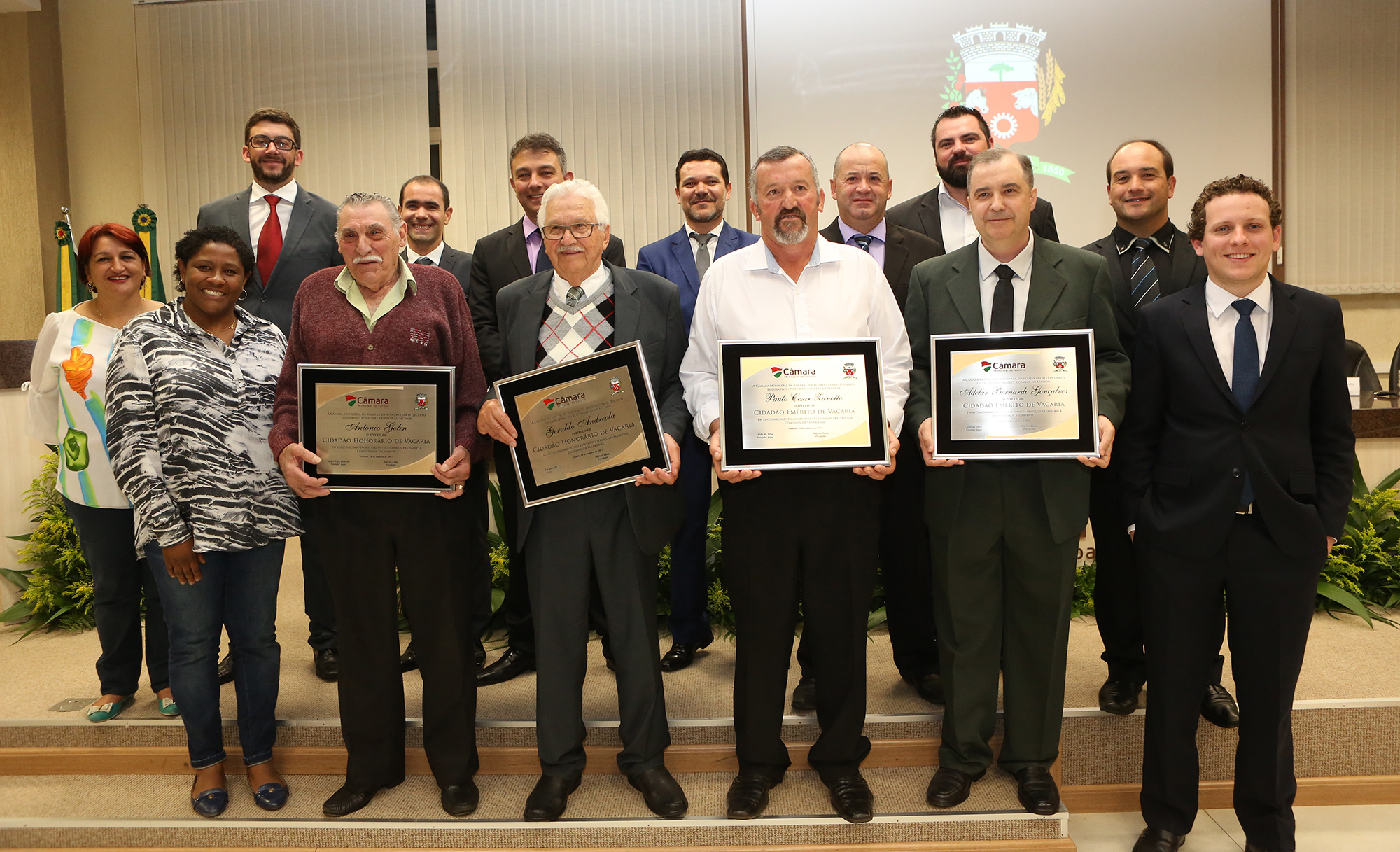 A Câmara Municipal realizou na noite de terça-feira(24) sessão solene em comemoração aos 167 anos de Vacaria e entrega dos títulos de cidadãos vacarienses aos senhores Geraldo Andreola, Antônio Golin, Paulo Cezar Zanotto e Adelar Bernardi Gonçalves.