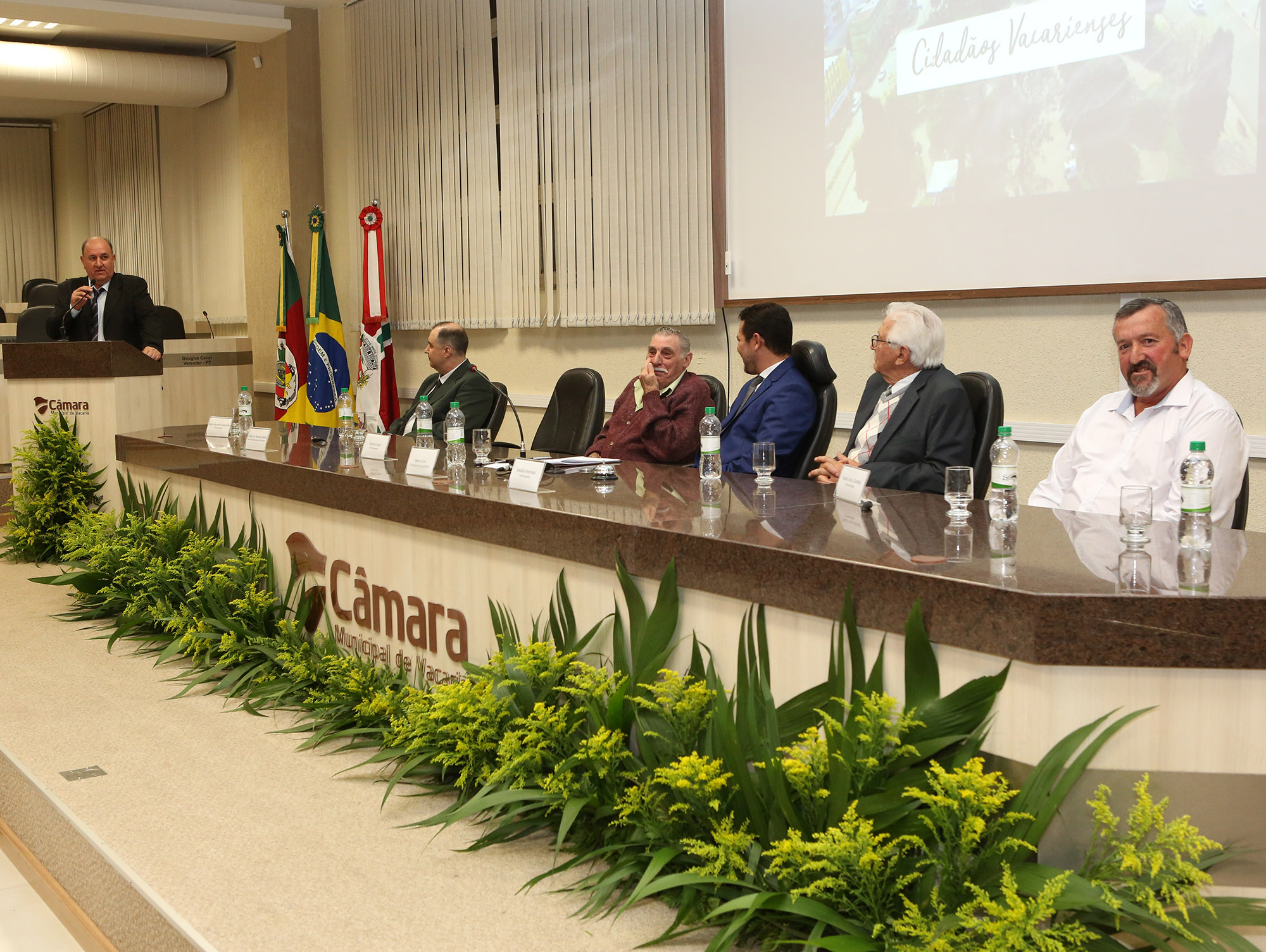 Presidiu a solenidade, o vereador Marcos Lima (PTB). O Secretário Geral de Governo de Vacaria, Gilmar de Almeida Boeira representou o Executivo.