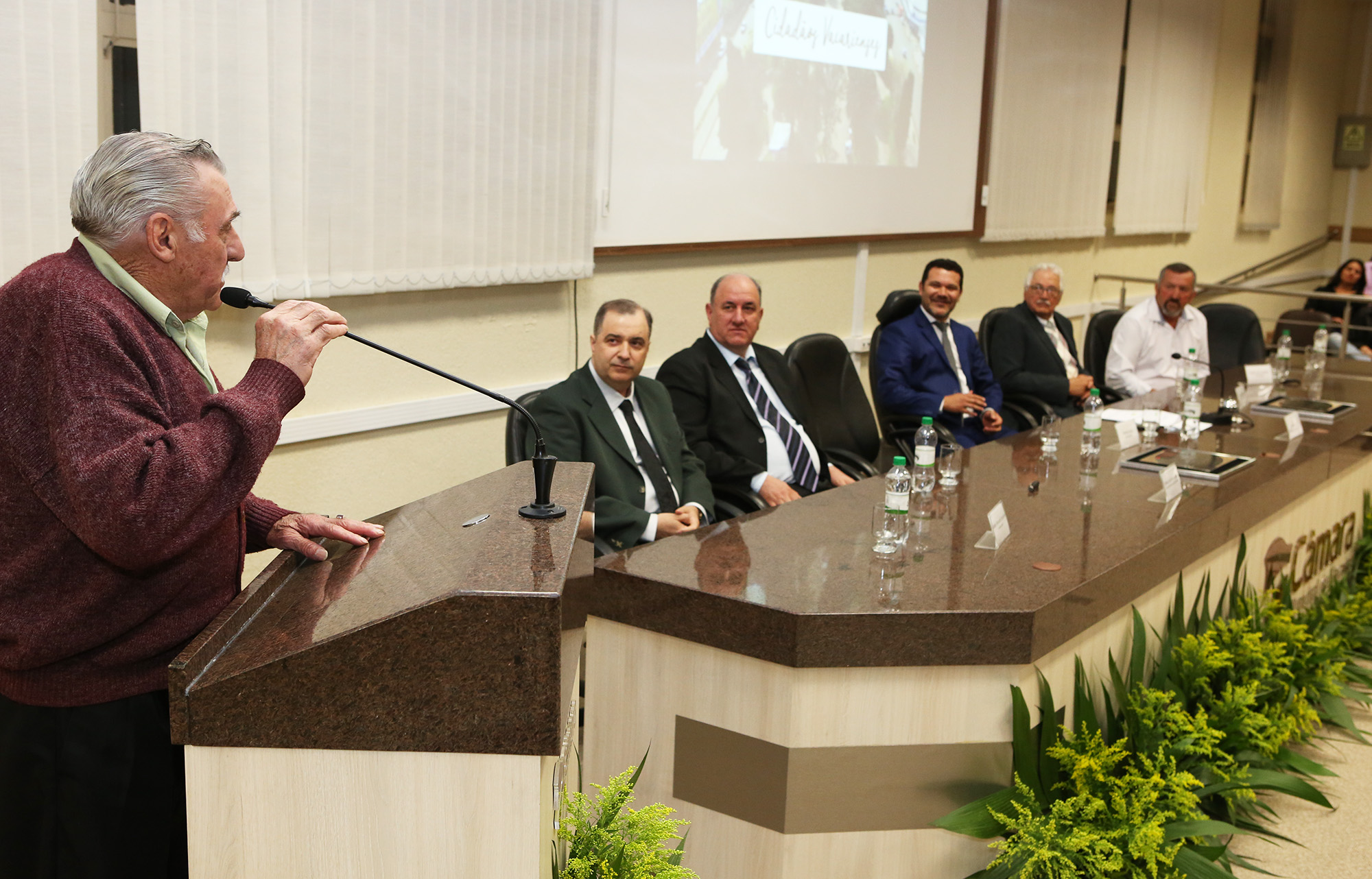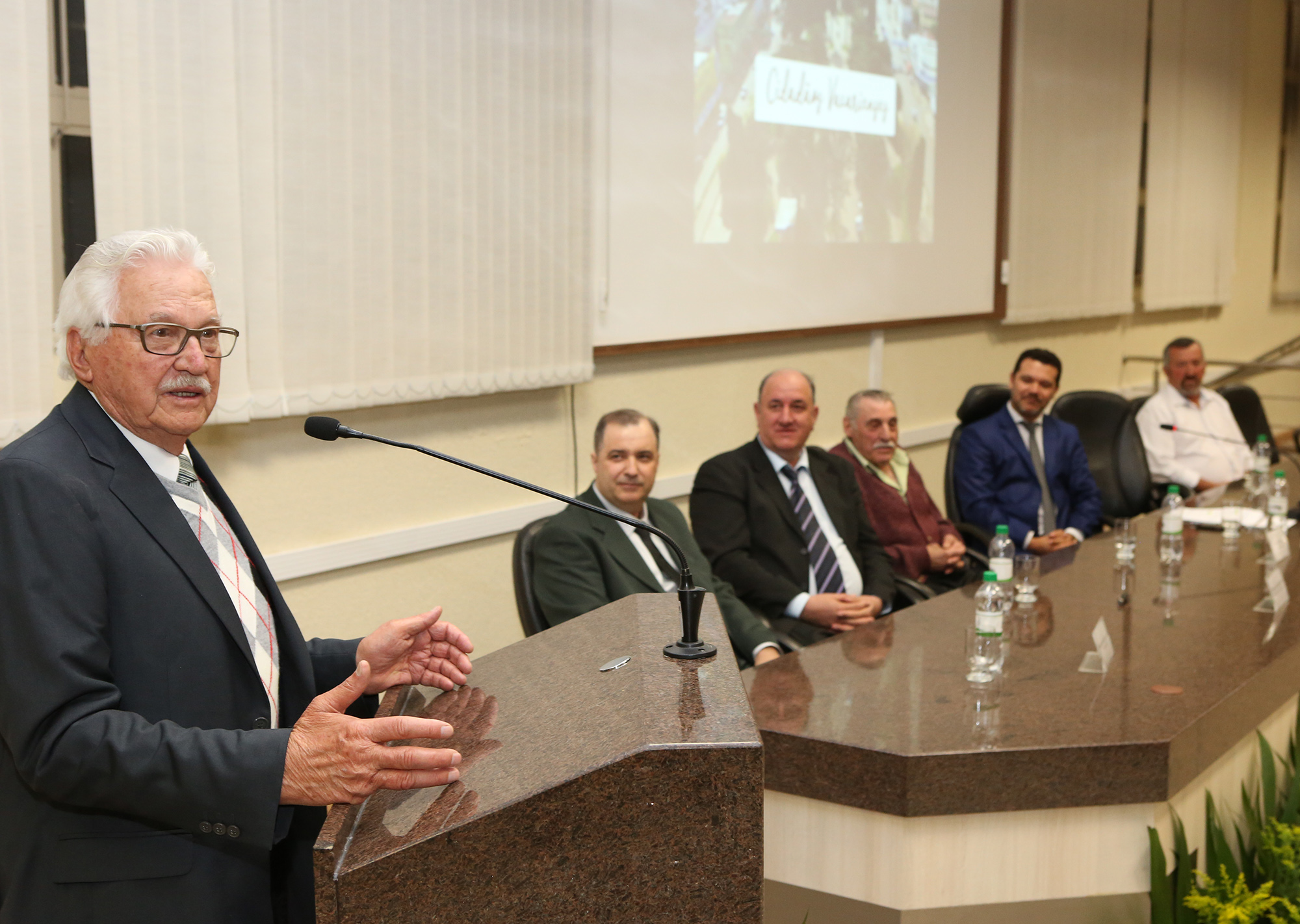 Todos os anos, na semana de aniversário da cidade, o legislativo entrega a honraria. O senhor Geraldo Andreola recebeu o título das mãos de Luciano Ramos, suplente do Partido Progressista. Em seu pronunciamento, Luciano relatou a trajetória de dedicação do homenageado ao trabalho: “Geraldo Andreola começou a trabalhar ainda jovem em uma olaria, depois atuou em uma madeireira, puxou caminhão por anos e, visionário, fundou um britador em Vacaria”. Luciano destacou, ainda, a vitalidade de Geraldo aos 86 anos. “Com quase 87 anos, seu Geraldo ainda trabalha e está à frente da Pedreira Vacaria. Curiosamente ainda viaja, dirigindo” reforçou. A ex-vereadora Jane Andreola, filha do homenageado, compartilhou com o público