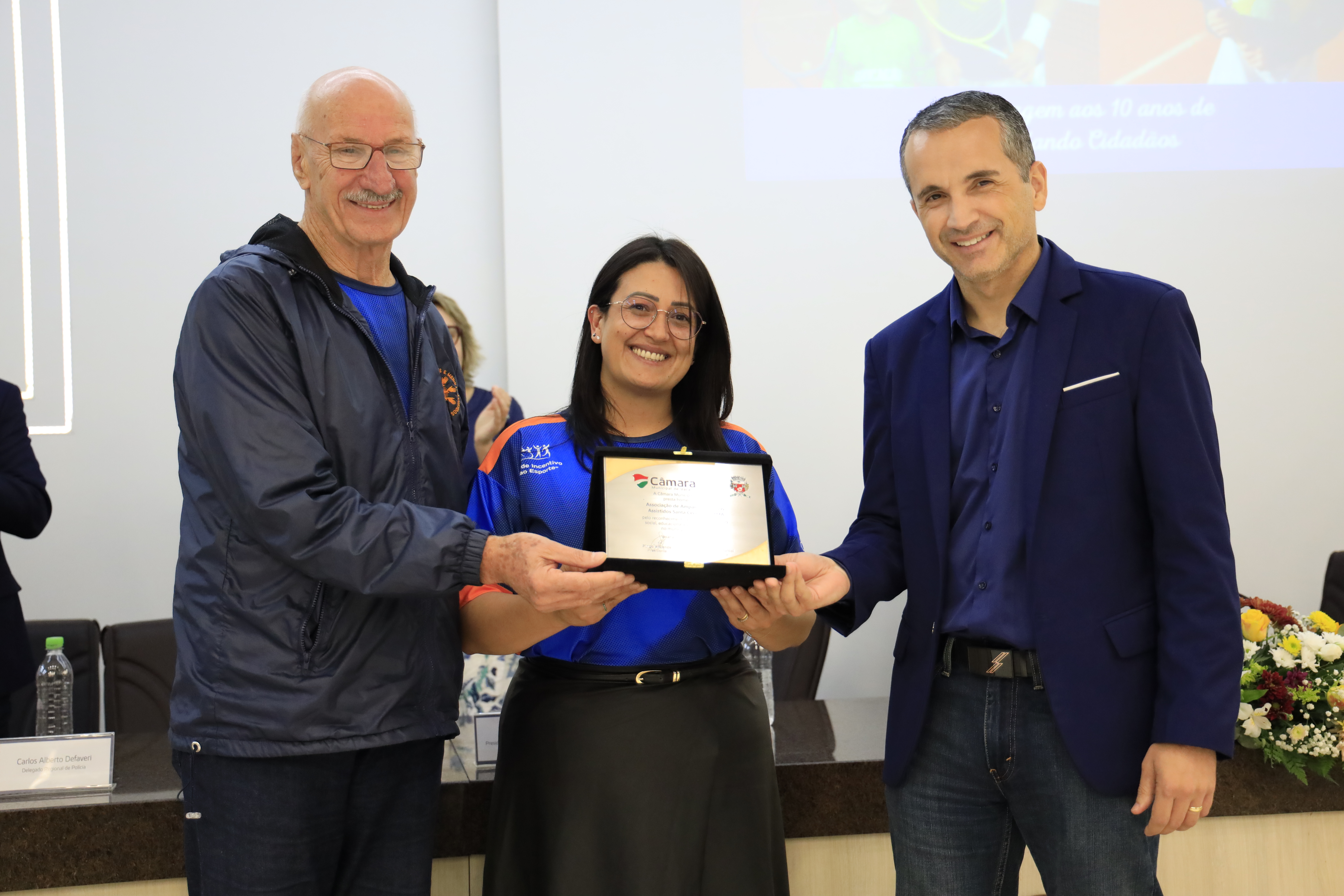 A Câmara de Vereadores realizou, na noite desta quarta-feira, 22/04, uma sessão solene em homenagem aos 10 anos do projeto Lapidando Cidadãos. A iniciativa foi proposta pela vereadora Deise Montanari e reuniu autoridades, representantes da Associação de Menores Assistidos (AMMA), equipe técnica, atletas, familiares e comunidade no plenário da Casa Legislativa. A cerimônia teve como foco reconhecer a trajetória de uma iniciativa que, ao longo de uma década, utiliza o esporte, especialmente o tênis, como ferramenta de transformação social, promovendo inclusão, disciplina e novas perspectivas para crianças e adolescentes de Vacaria.