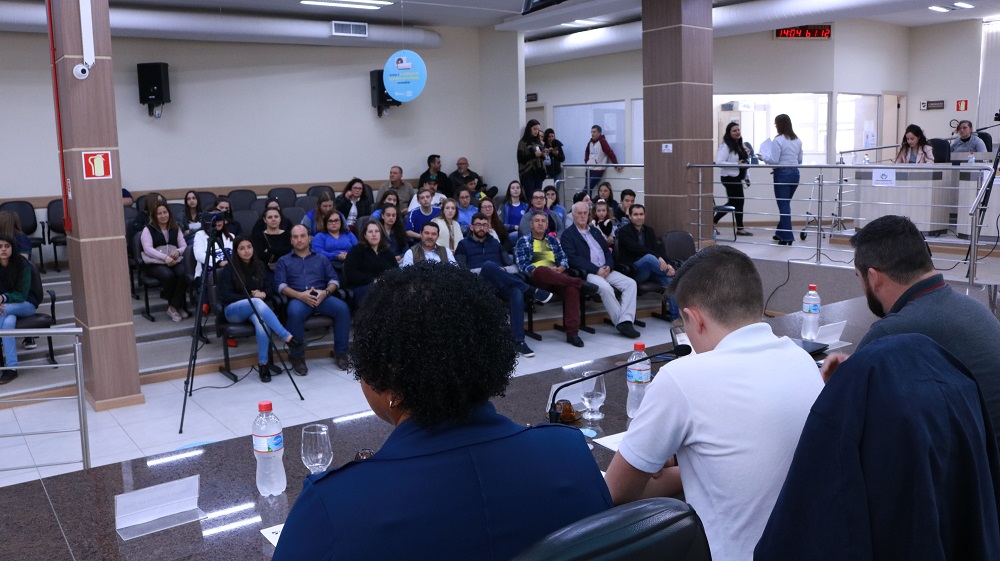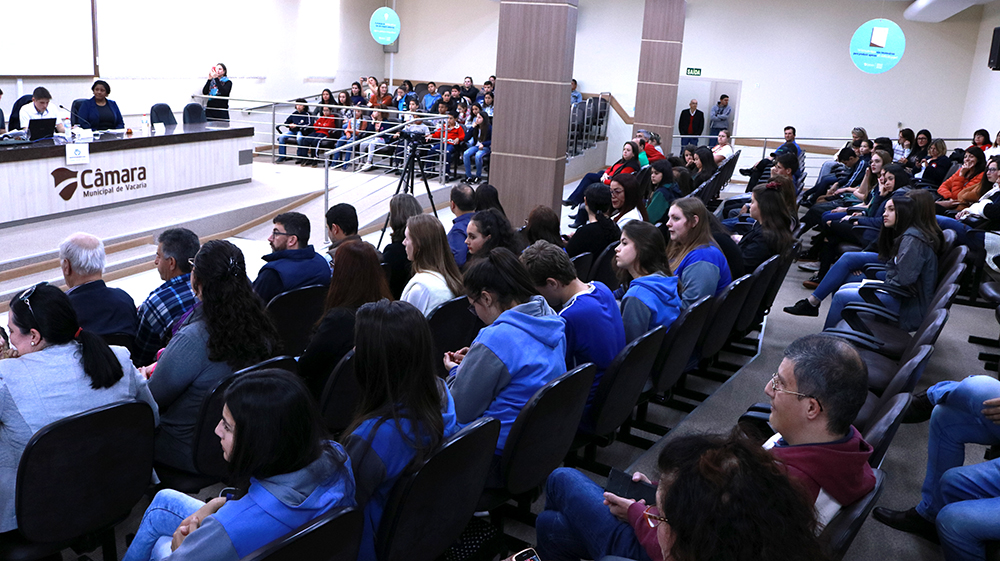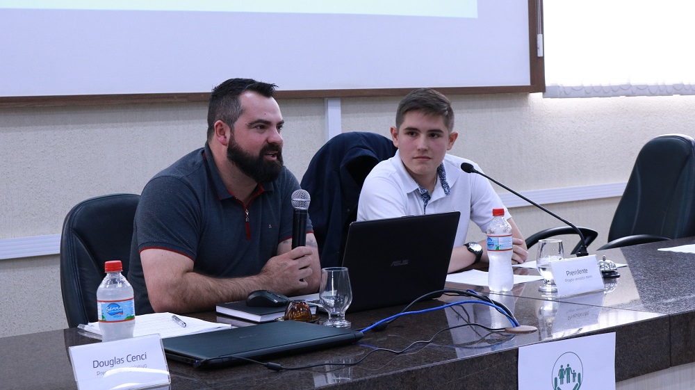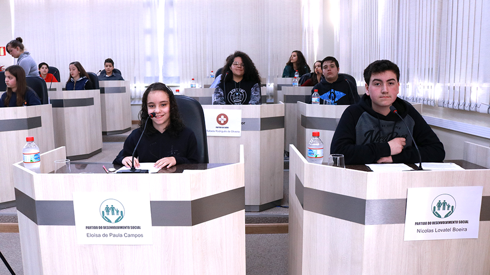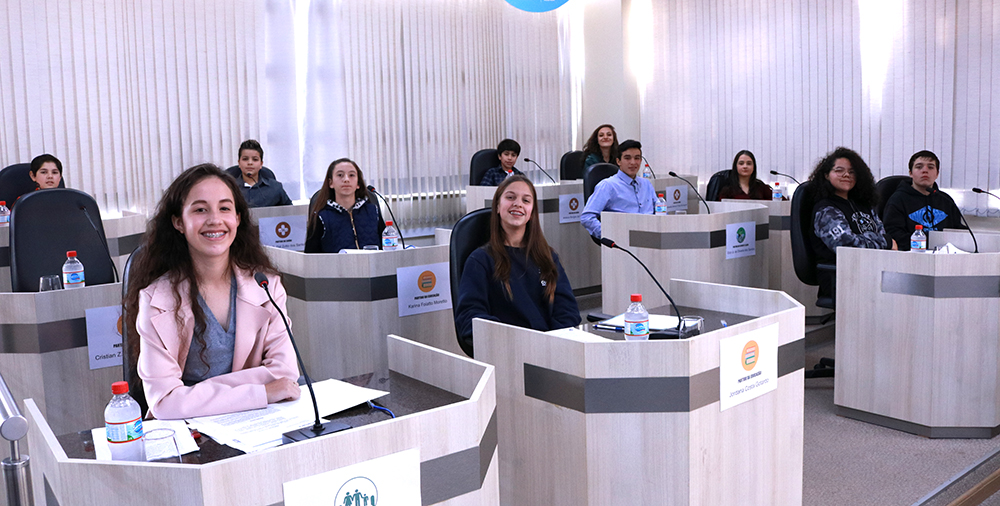 Aconteceu nesta terça-feira (28), a primeira edição do Projeto Vereador Mirim por um dia, idealizado pela vereadora Selma ri Souza da Silva e aprovado por todos os vereadores. No plenário da Câmara, 15 alunos das escolas municipais, estaduais e particulares distribuídos em quatro partidos criados especialmente para o Projeto defenderam o encaminhamento de oito indicações ao Poder Executivo em busca de melhorias para a cidade.