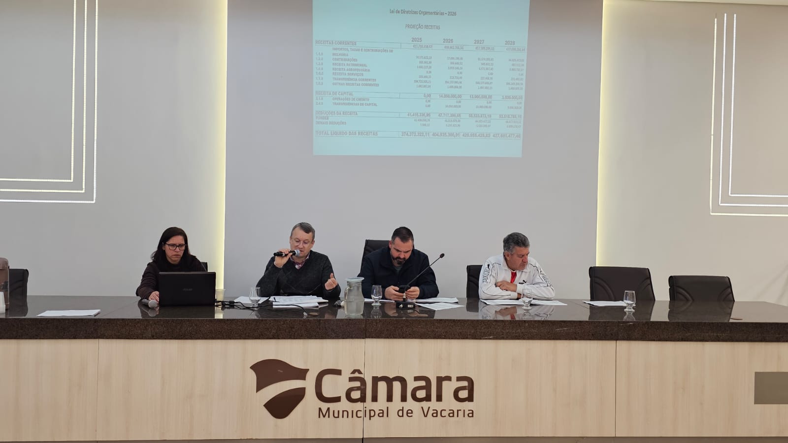 A Câmara de Vereadores de Vacaria realizou, nesta quarta-feira,10/09, audiência pública para discutir o projeto da Lei de Diretrizes Orçamentárias (LDO) de 2026. A proposta, elaborada pelo Executivo e analisada pelo Legislativo, define as prioridades do município para o próximo ano e serve de base para a elaboração da Lei Orçamentária Anual.