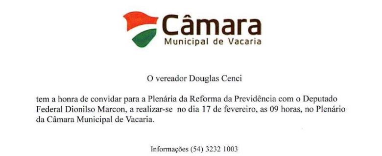 07/02/17 11:08:09A plenária contará com a presença do Deputado Dionilso Marcon (PT)