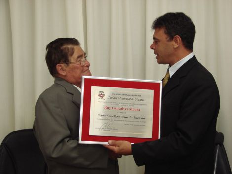 A Câmara Municipal esteve reunida solenemente, na noite de terça-feira, 19 de fevereiro, para fazer a entrega do Título de Cidadão Honorário de Vacaria ao Capitão do Exército Ruy Gonçalves de Moura, 85 anos, residente no município desde 1972.