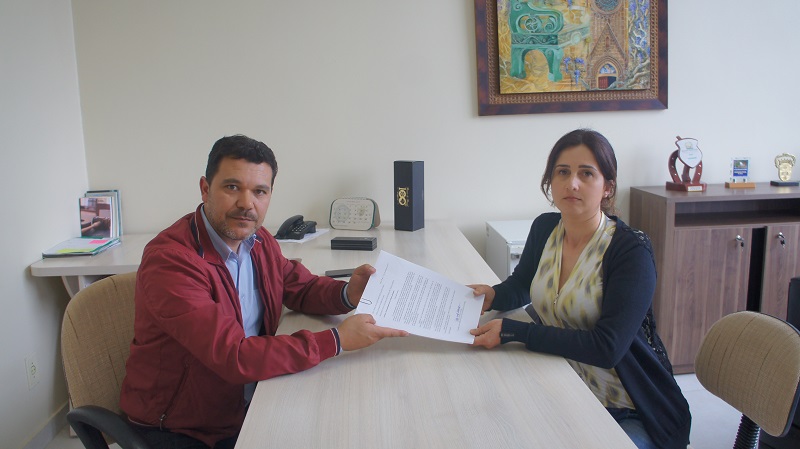 Nesta tarde de sexta-feira (17) o presidente da Câmara Municipal vereador Marcos Lima recebeu em seu gabinete a professora Adriana de Almeida Abreu, que realizou a entrega de um abaixo assinado da comunidade escolar da Escola Municipal de Ensino Fundamental João Becker da Silveira, localizada no 4º Distrito de Vacaria, em protesto ao funcionamento da escola em turno único, fato confirmado pela atual administração no mês de agosto do corrente ano.