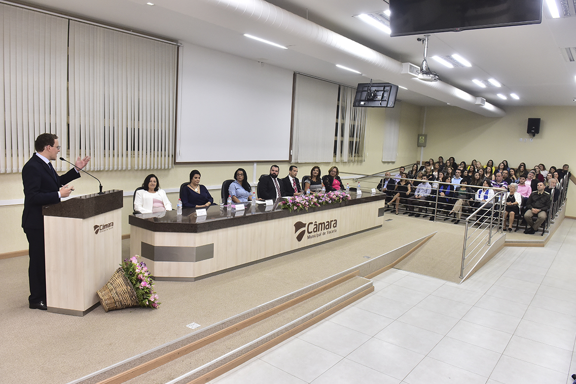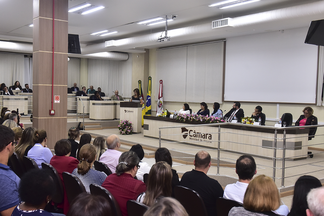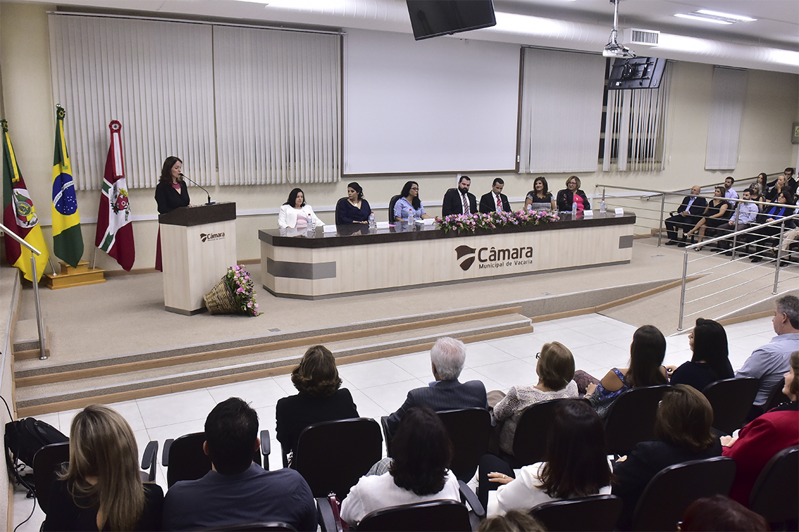 A comunidade vacariense lotou o plenário para acompanhar as homenagens. A maioria dos presentes eram mulheres. A solenidade foi conduzida pelo presidente Douglas Cenci (PT) e foi acompanhada por todos os parlamentares.