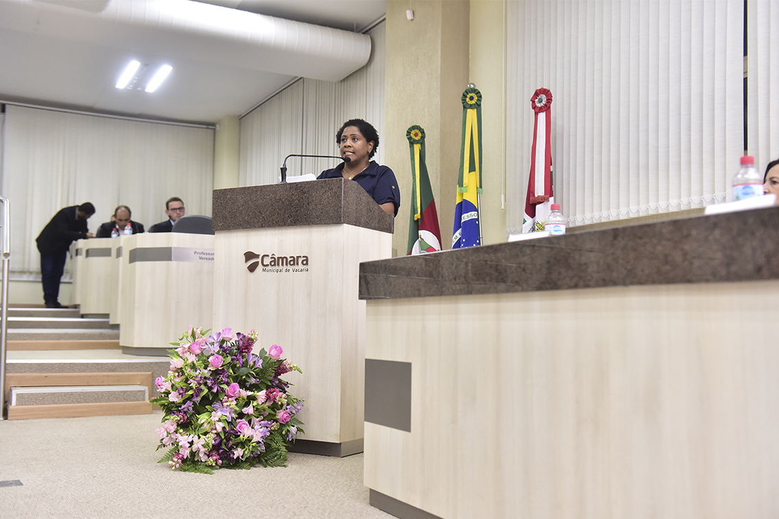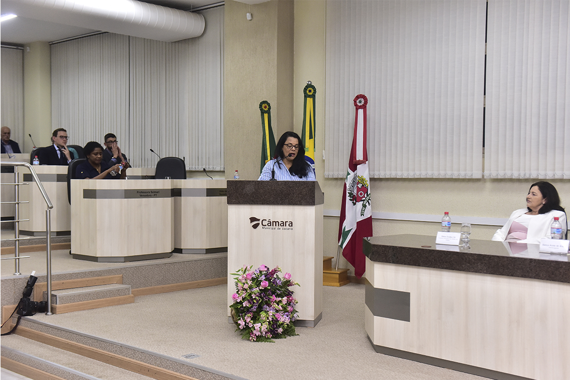 Em seu pronunciamento, Selmari destacou as iniciativas de que extrapola sua obrigação profissional. Bianca criou um grupo de amparo e instrução às vítimas, levou o tema da violência às escolas, idealizou um grupo para os agressores e, também, trouxe a Vacaria o Projeto Acolher, que promove oficinas de valorização feminina e, também, profissionalizantes.
