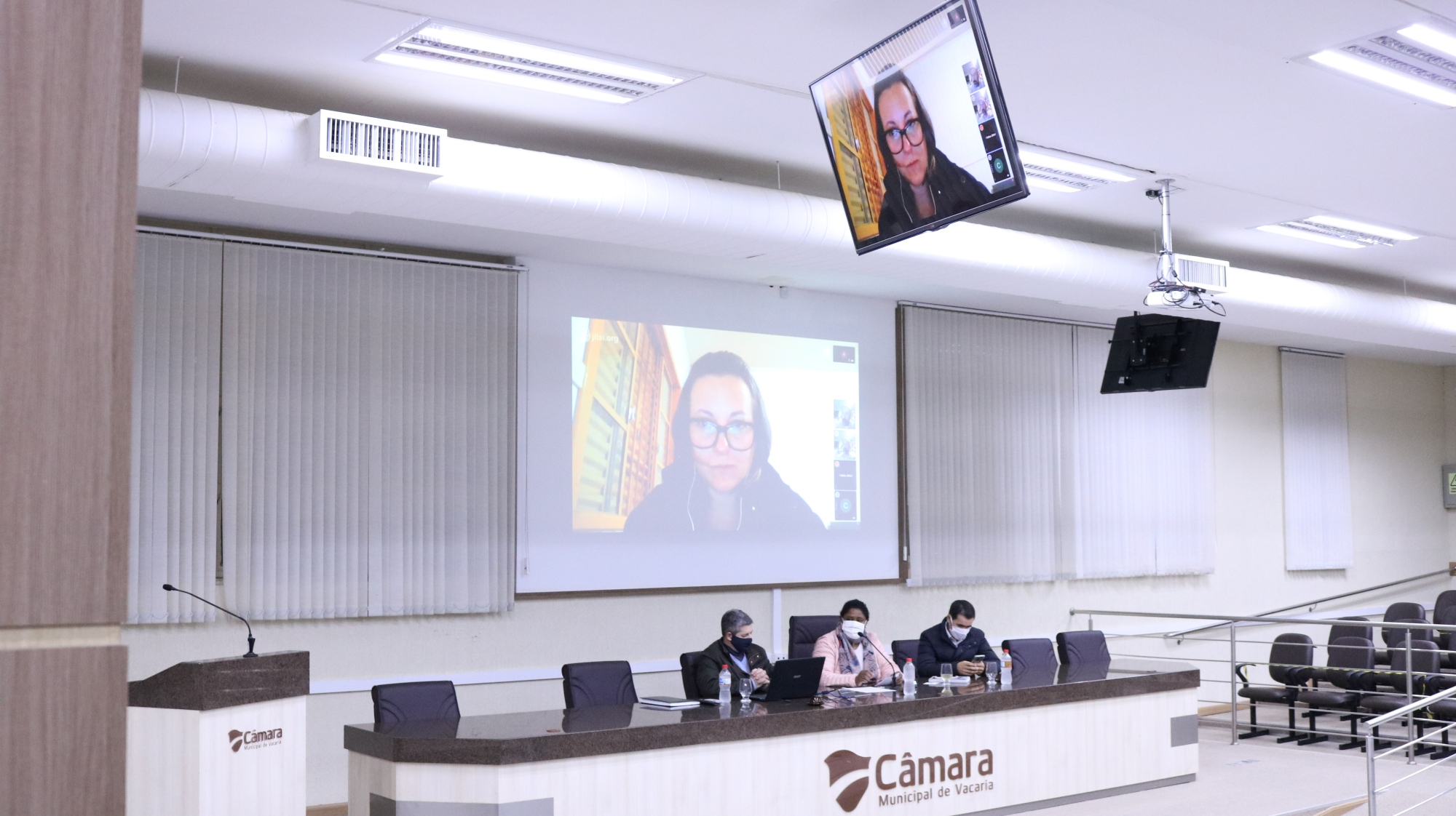 Por meio do Requerimento 05/2020 de autoria do vereador André Rokoski, foi realizada nesta terça-feira (09) uma sessão extraordinária com a participação do gerente da RGE de Vacaria, Fabio Calvo Silva e a Consultora de Negócios da distribuidora, Laise Grzeblelickas.