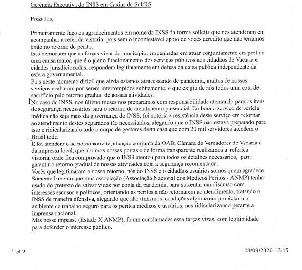 23/09/20 04:50:48Os médicos peritos estavam impedidos de realizar perícias presenciais desde o dia 08 de setembro sob alegações de falta de segurança sanitária nas agências do INSS