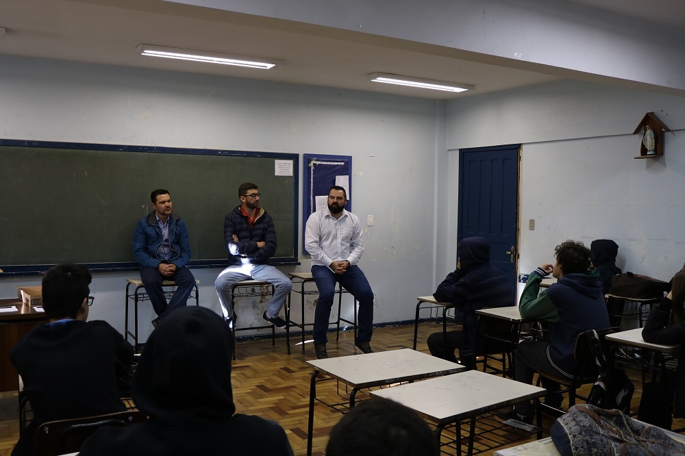Os vereadores Douglas Cenci, Fernando Lucena Maciel, Osvaldo Grigolo, Selmari Souza da Silva, André Rokoski, Mauá Deluchi Schuler e Marcos Lima, acompanhados do contador Marcos Zamboni visitaram as Escolas de ensino médio Padre Pacífico, José Fernandes de Oliveira e Irmão Getúlio onde conversaram com os alunos sobre os projetos e incentivaram sua participação.