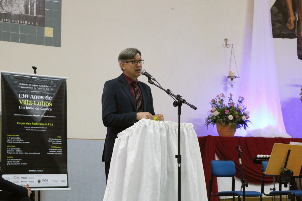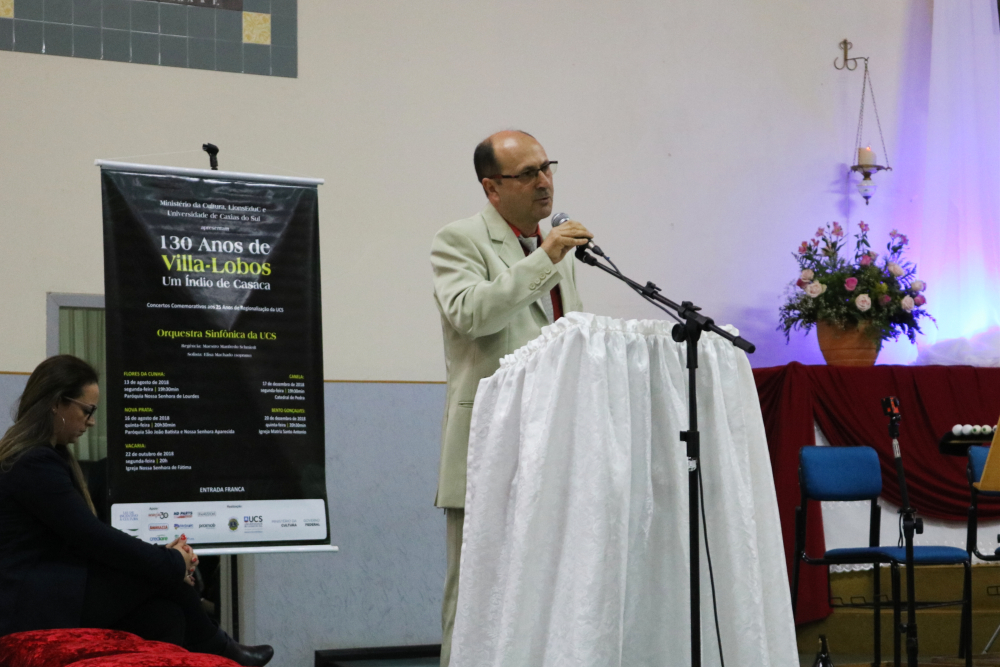 A apresentação aconteceu na Igreja Nossa Senhora de Fátima e contou com a presença do Reitor da Universidade, Senhor Evaldo Antonio Kuiava, e do Diretor do campus de Vacaria, Senhor Paulo Gilberto dos Santos Silva.