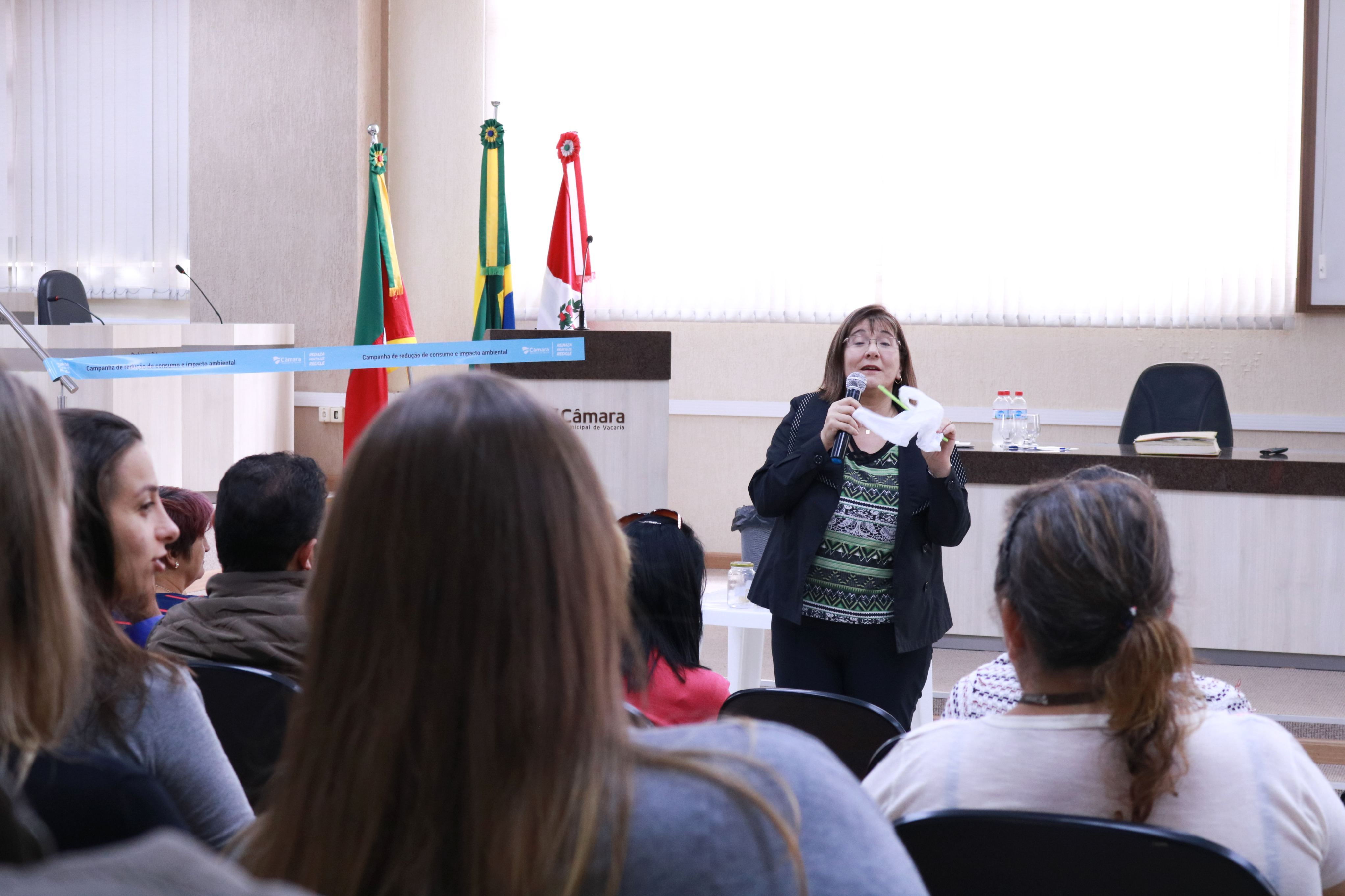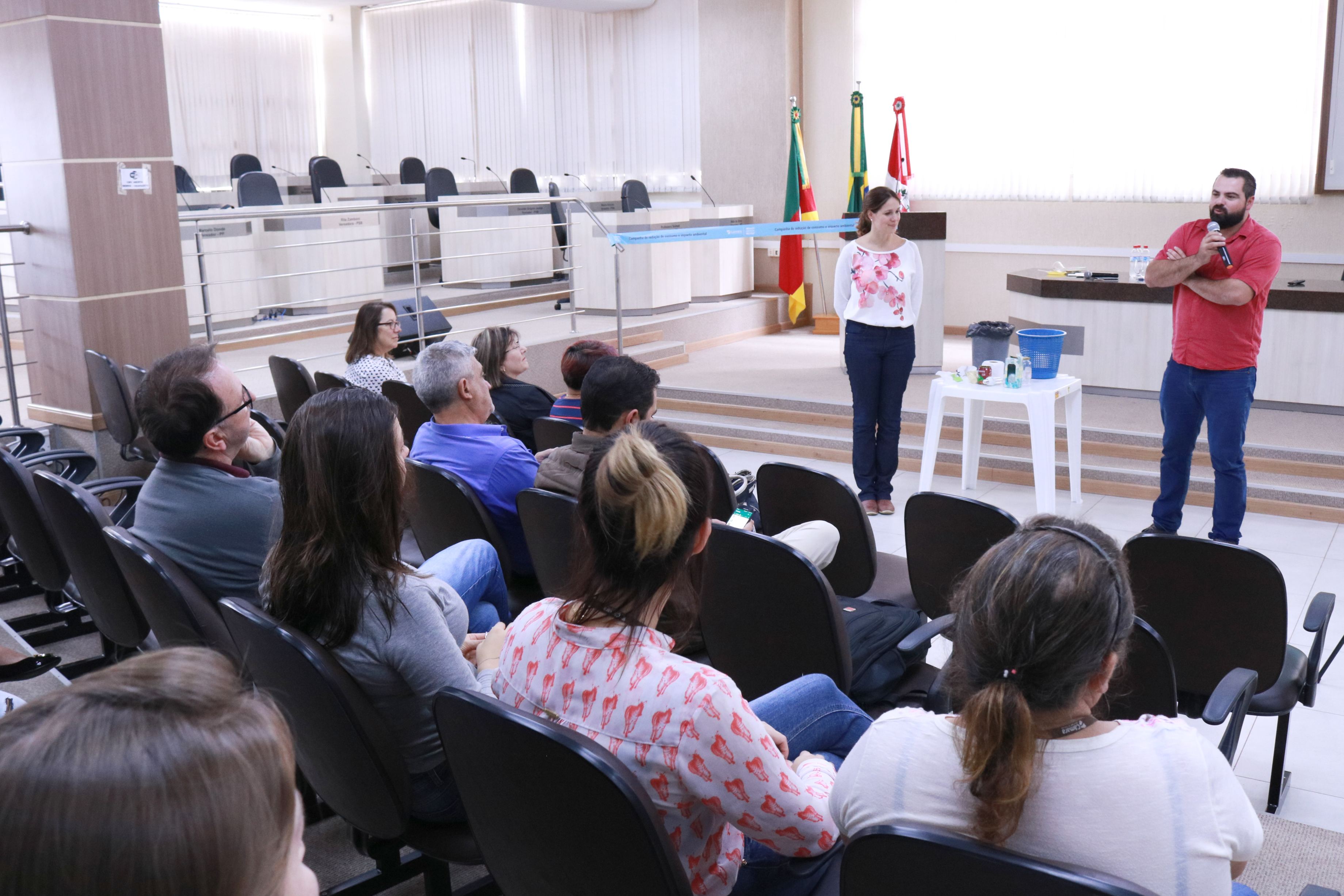 Os colaboradores e veradores participaram nesta quarta de uma palestra de sensibilização, proferida pela mestreem engenharia ambiental, Marli Borsoi, e pela relações públicas Giana Pontalti, servidora da Casa. A palestra apresentou aos colaboradores, o impacto gerado pelo legislativo e lançou o desafio para a adoção de 15 novos comportamentos.