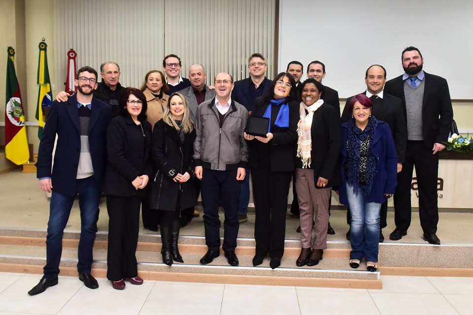 A Câmara Municipal de Vacaria realizou nesta terça-feira (16), sessão solene em homenagem aos 25 anos de implantação do curso de Magistério do Instituto Estadual de Educação Irmão Getúlio, atendendo uma proposição de autoria do vereador suplente Diomir Saraiva(PT). Durante a sessão, a placa comemorativa à data foi entregue à Diretora do Irmão Getúlio, Marília Guazzelli da Costa pela vereadora Selmari Souza da Silva, líder da bancada do Partido dos Trabalhadores na Câmara.