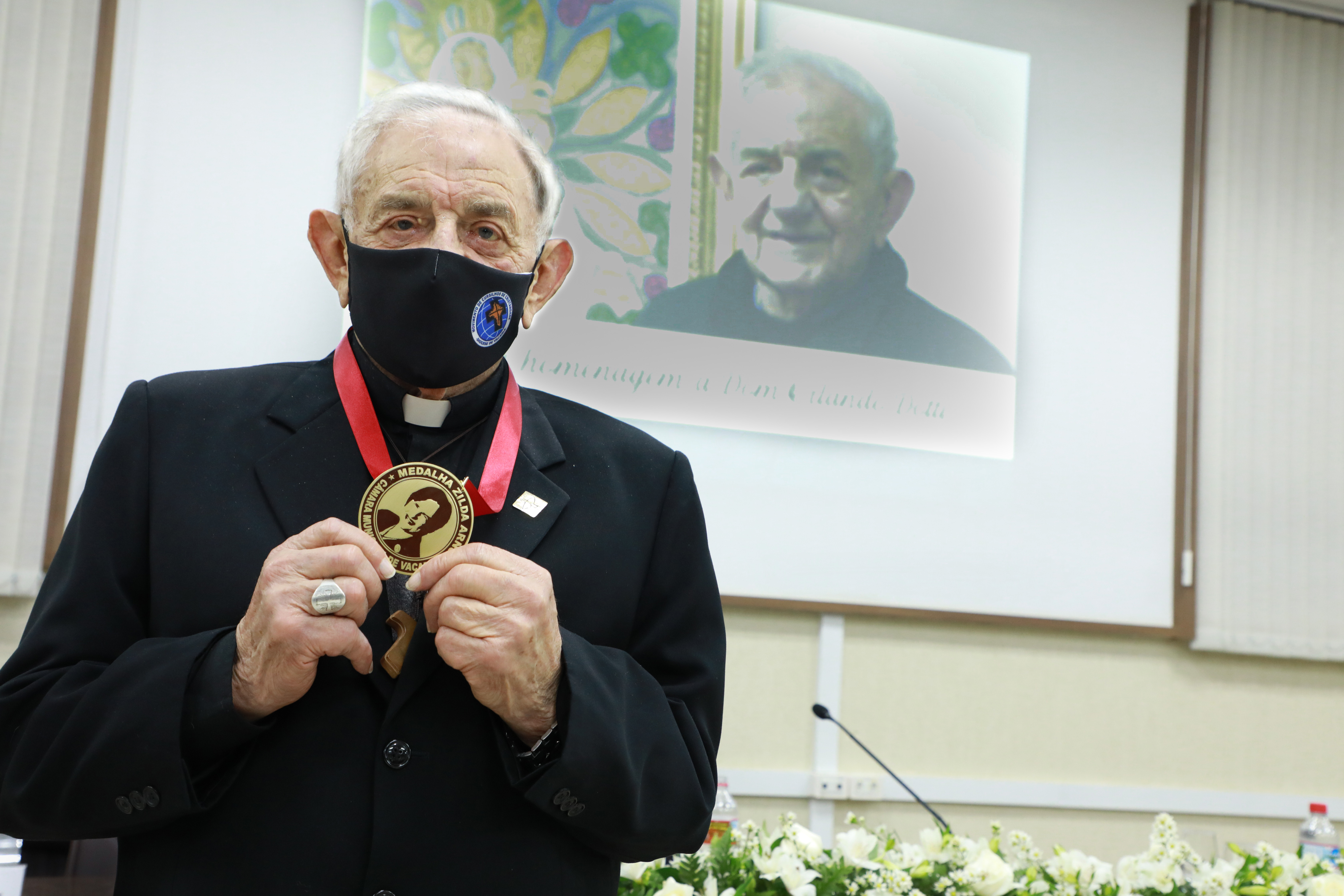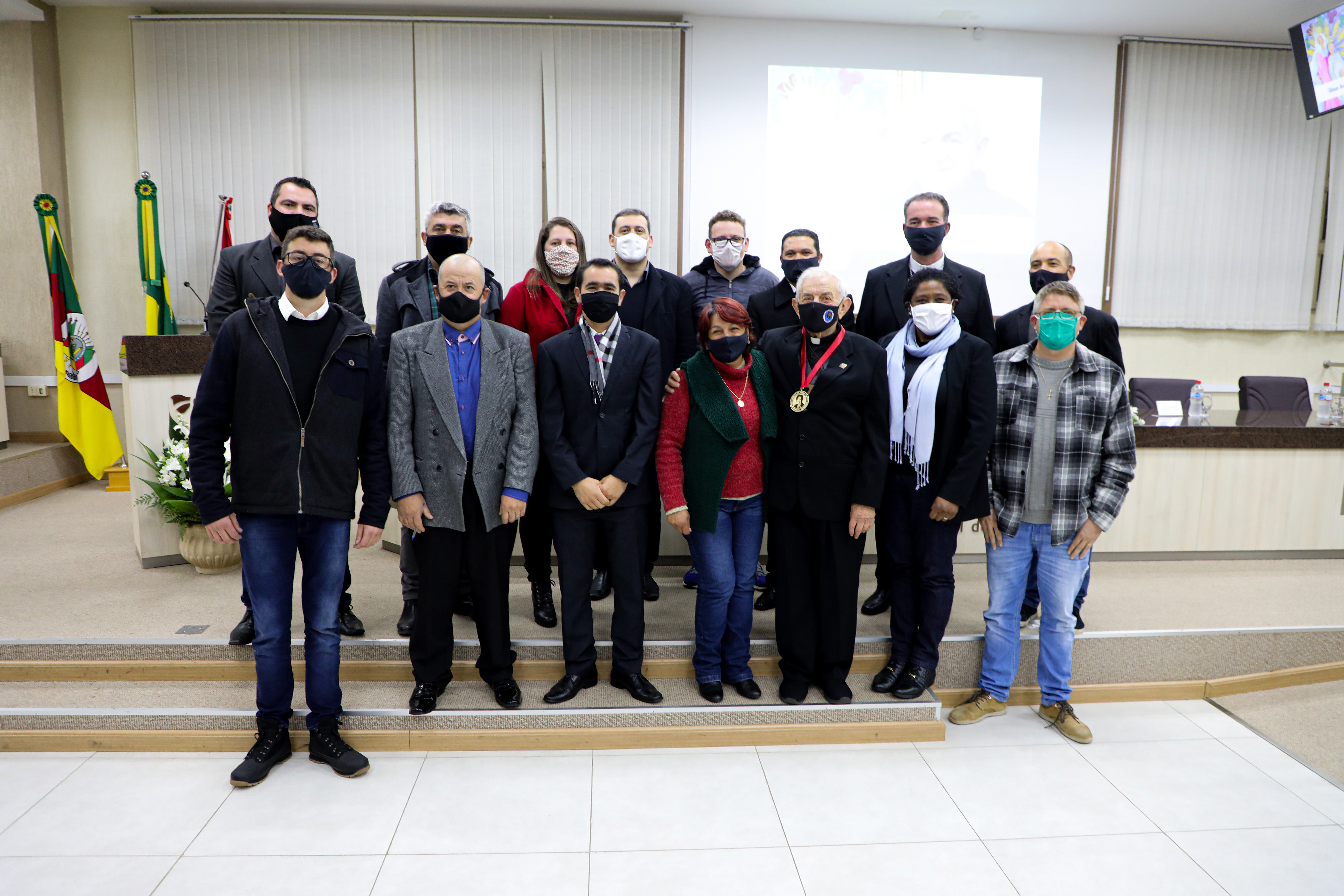 Foi realizada nesta segunda-feira (06), a Sessão Solene para a entrega da Medalha Zilda Arns ao Bispo Emérito de Vacaria, Dom Orlando Dotti. A honraria ao Bispo foi feita a partir do