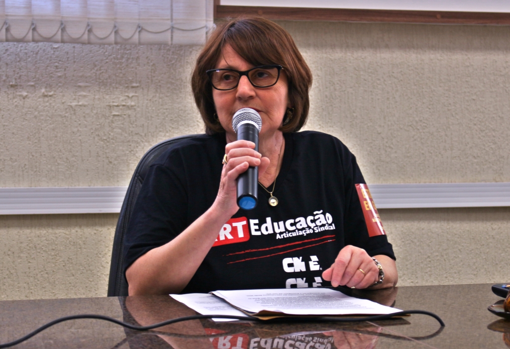 No dia 26 de setembro, a representante do 30º Núcleo do Cpers/ Sindicato, professora Joara Dutra Vieira, ocupou o espaço Tribuna Livre da Câmara Municipal para falar aos vereadores sobre a difícil situação enfrentada pelos servidores que, além de receberem os salários parcelados, correm o risco de perderem direitos como o adicional por tempo de serviço, garantia de cargo quando participante de mandato em sindicato ou associação de classe, 13º salário, entre outros.