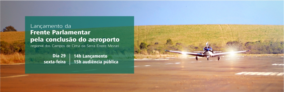 Nesta sexta-feira, dia 29, a Câmara Municipal de Vacaria vai lançar oficialmente a Frente Parlamentar pela conclusão do aeroporto regional dos Campos de Cima da Serra Enore Mezari. Desde julho, um grupo de vereadores se reúnem com o objetivo de angariar apoio de autoridades civis e políticas pela conclusão do aeroporto regional.