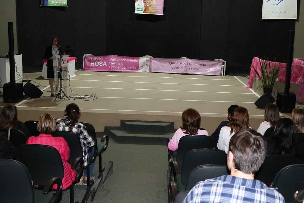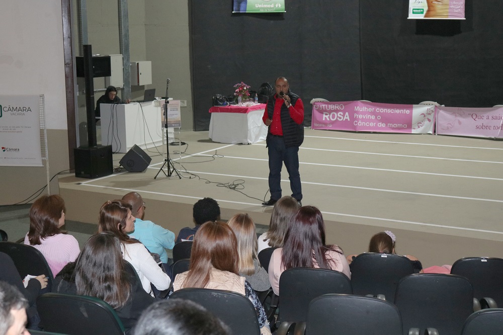 Nesta quarta-feira (23), no auditório da Casa do Povo, a Procuradoria Especial da Mulher da Câmara Municipal de Vacaria promoveu palestra alusiva a programação do Outubro Rosa. Na ocasião o psicólogo Alex Amaral abordou o tema Autoestima Feminina.