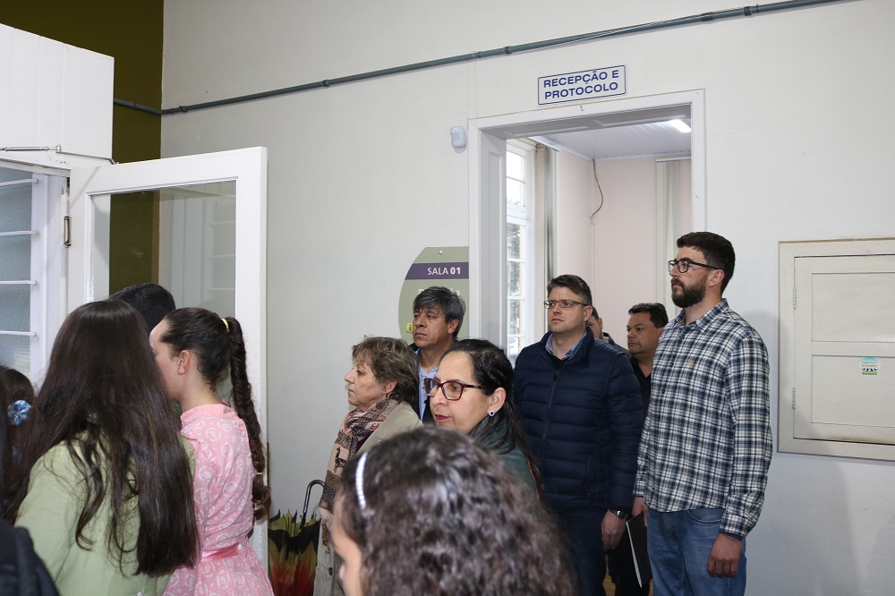 Devido ao mau tempo, solenidade realizou-se no hall da Prefeitura Municipal