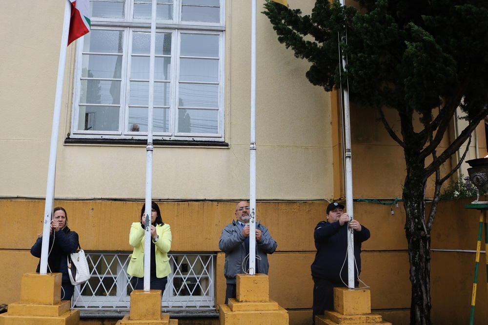 Nesta segunda-feira (03), o Poder Legislativo vacariense foi convidado pela Secretaria Municipal de Educação, a manifestar-se durante a cerimônia de arriamento dos Pavilhões, realizada em frente a Prefeitura Municipal, alusiva a programação da Semana da Pátria 2018.