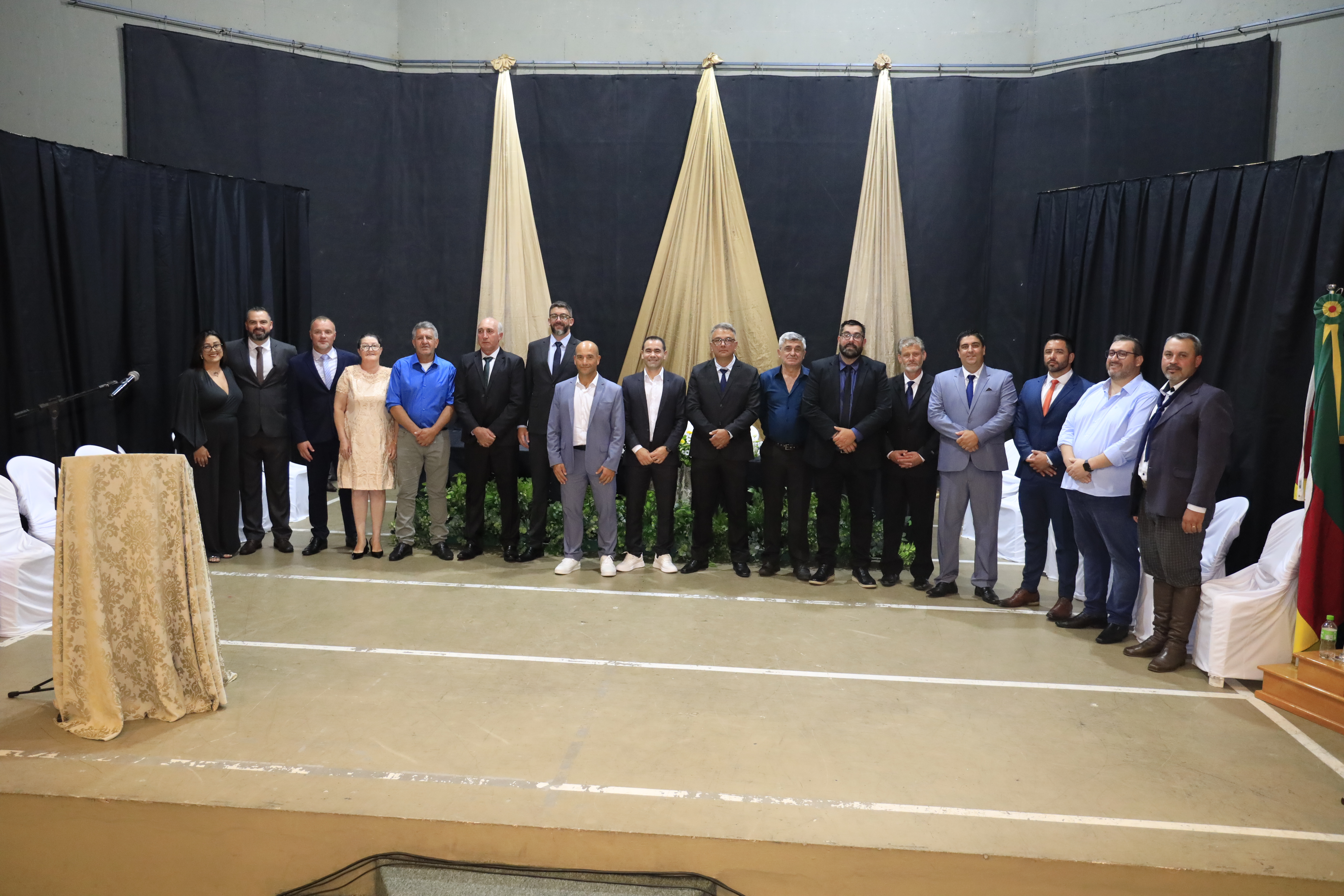 O Centro Cultural Marcos Palombini, a Casa do Povo, celebrou o primeiro ato político solene oficial de 2025. Foram empossados o prefeito André Rokoski (PL), o vice-prefeito Fernando Lucena Maciel (PDT) e os 15 vereadores que irão compor a 19ª Legislatura da Câmara Municipal de Vacaria. Todos os mandatos têm vigência para o período 2025-2028.