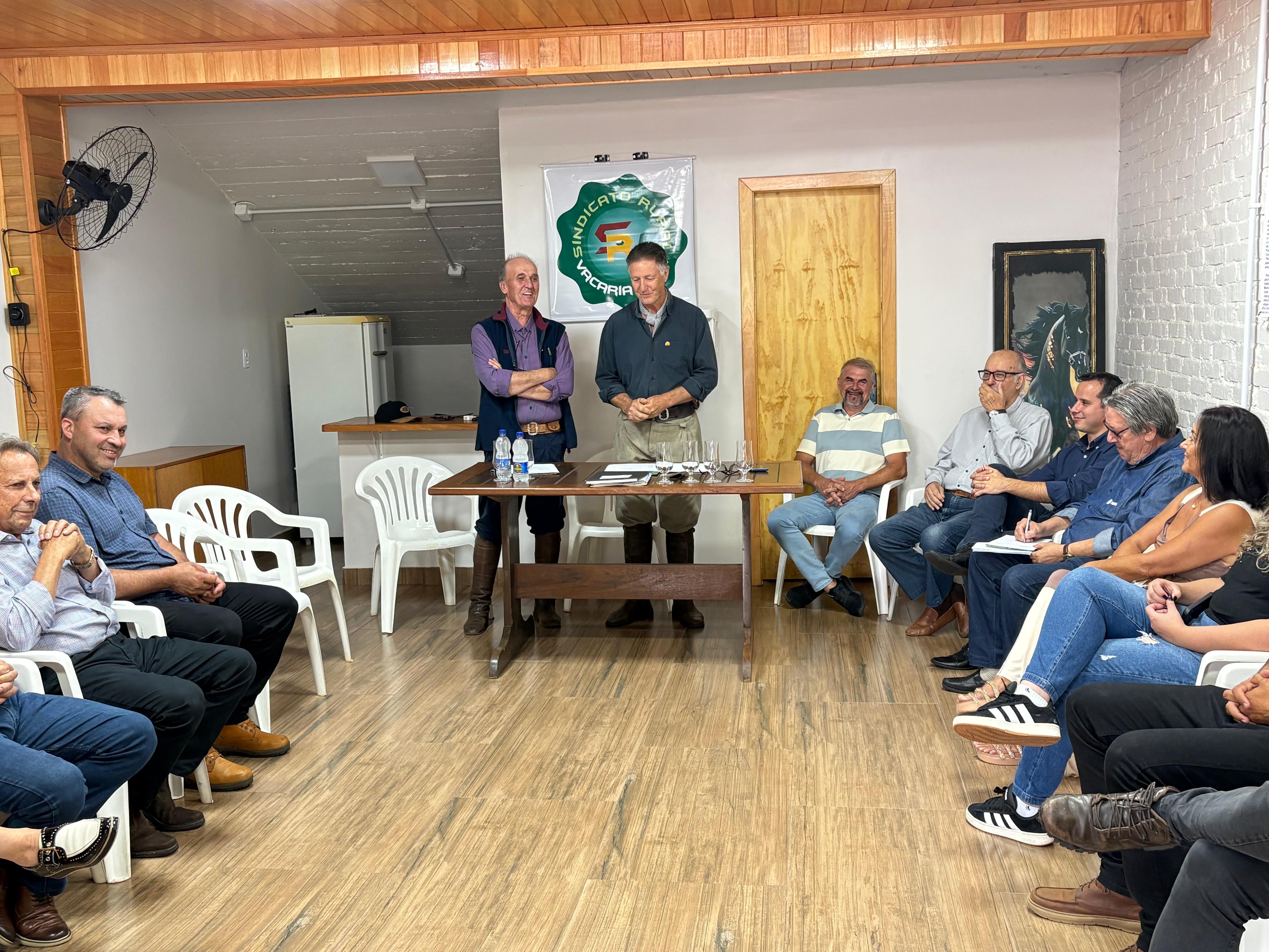 O vice-presidente da Farsul, César Vieira, ressaltou que os desafios enfrentados pelo setor envolvem fatores climáticos, econômicos e de mercado, e destacou a importância das reuniões regionais para ouvir as demandas diretamente dos sindicatos rurais e encaminhá-las à federação.