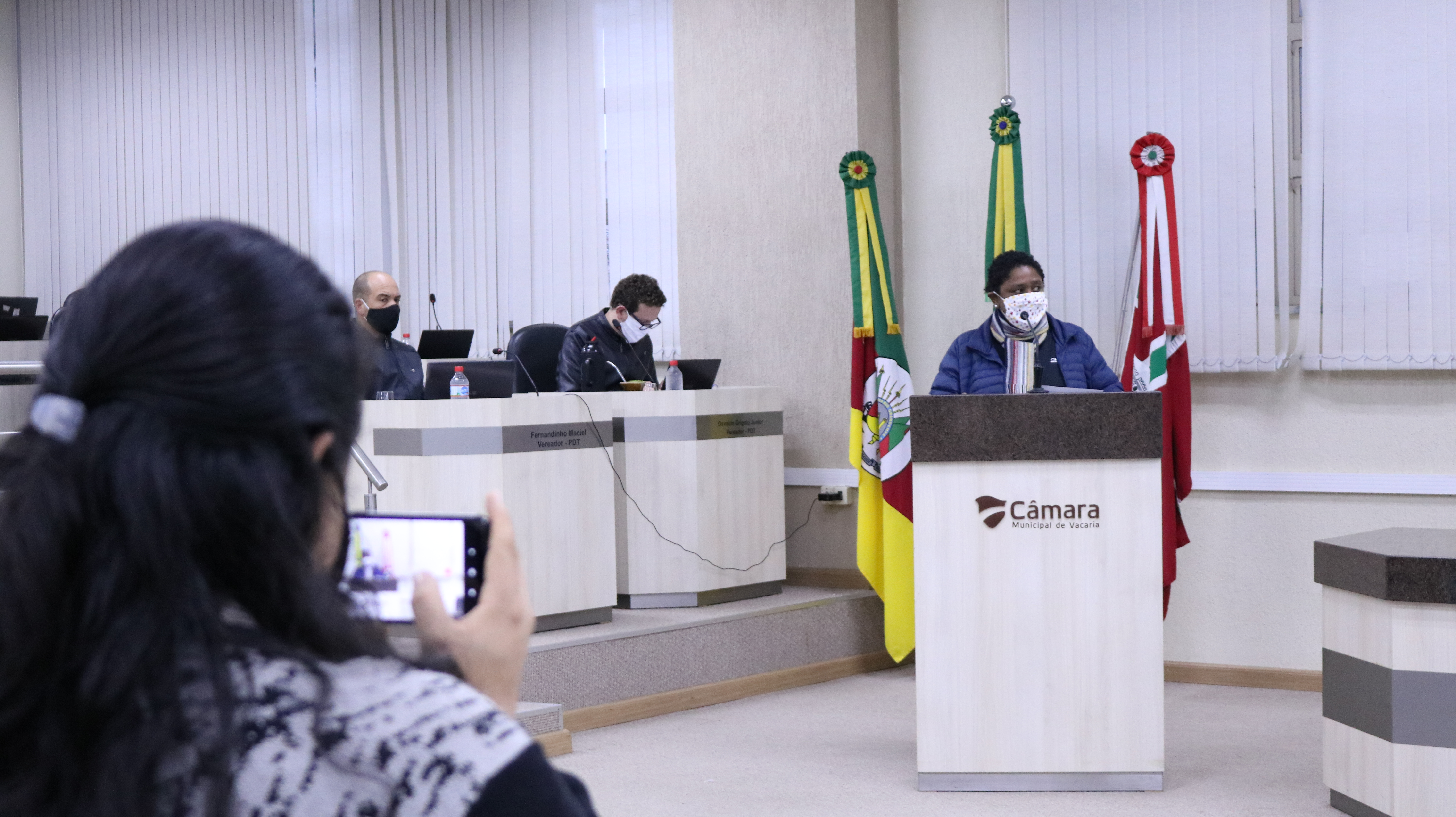 Um dia para ficar na história política de Vacaria. A primeira vereadora negra foi eleita a presidente da Câmara Municipal de Vacaria. Em uma eleição que teve três nomes na disputa, Selmari Etelvina Souza da Silva concorreu ao cargo junto dos vereadores Leandro Borges de Lima e André Rokoski, sendo que um quarto vereador, Douglas Cenci, abriu mão da disputa.