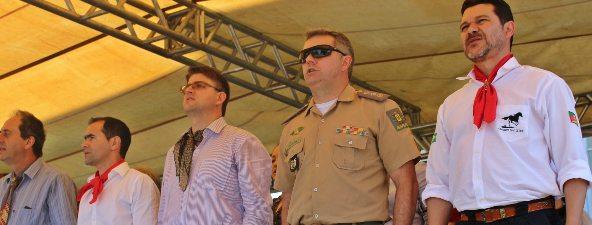 Com a realização do Desfile Temático e de Cavalarianos, chegou ao fim, na tarde de ontem, a programação da Semana Farroupilha 2017, em Vacaria. O Poder Legislativo esteve representado no palanque oficial do Desfile pelo presidente vereador Marcos Lima e vereadores André Luis Rokoski(PMDB) e Marcelo Dondé(PP).