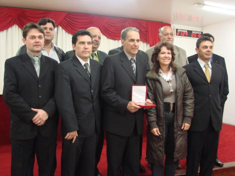 Ao fazer uso da palavra o representante da instituição homenageada Prof º José Carlos Avino agradeceu o carinho e reconhecimento da comunidade vacariense manifestado através da Câmara de Vereadores.