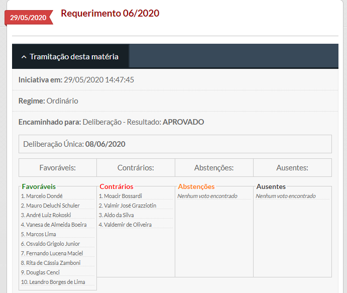 O Requerimento foi aprovado por 10 votos favoráveis e 04 contrários o que possibilitou que o