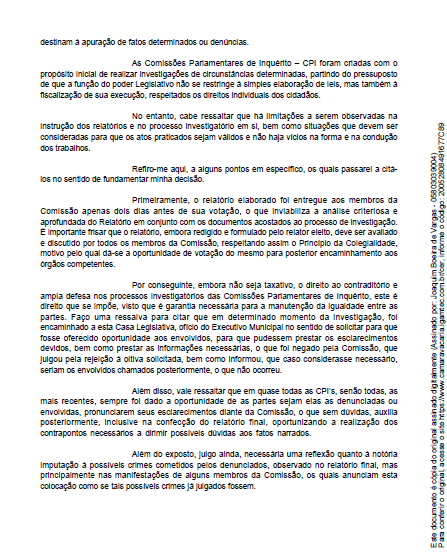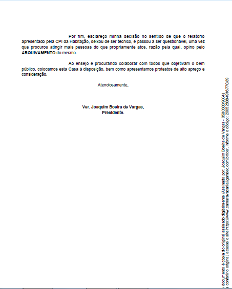 Segundo consta no Ofício o Presidente optou pelo arquivamento do relatório após análise técnica de pontos considerados indispensáveis para o bom desempenho dos trabalhos realizados pelas Comissões Parlamentares de Inquérito.