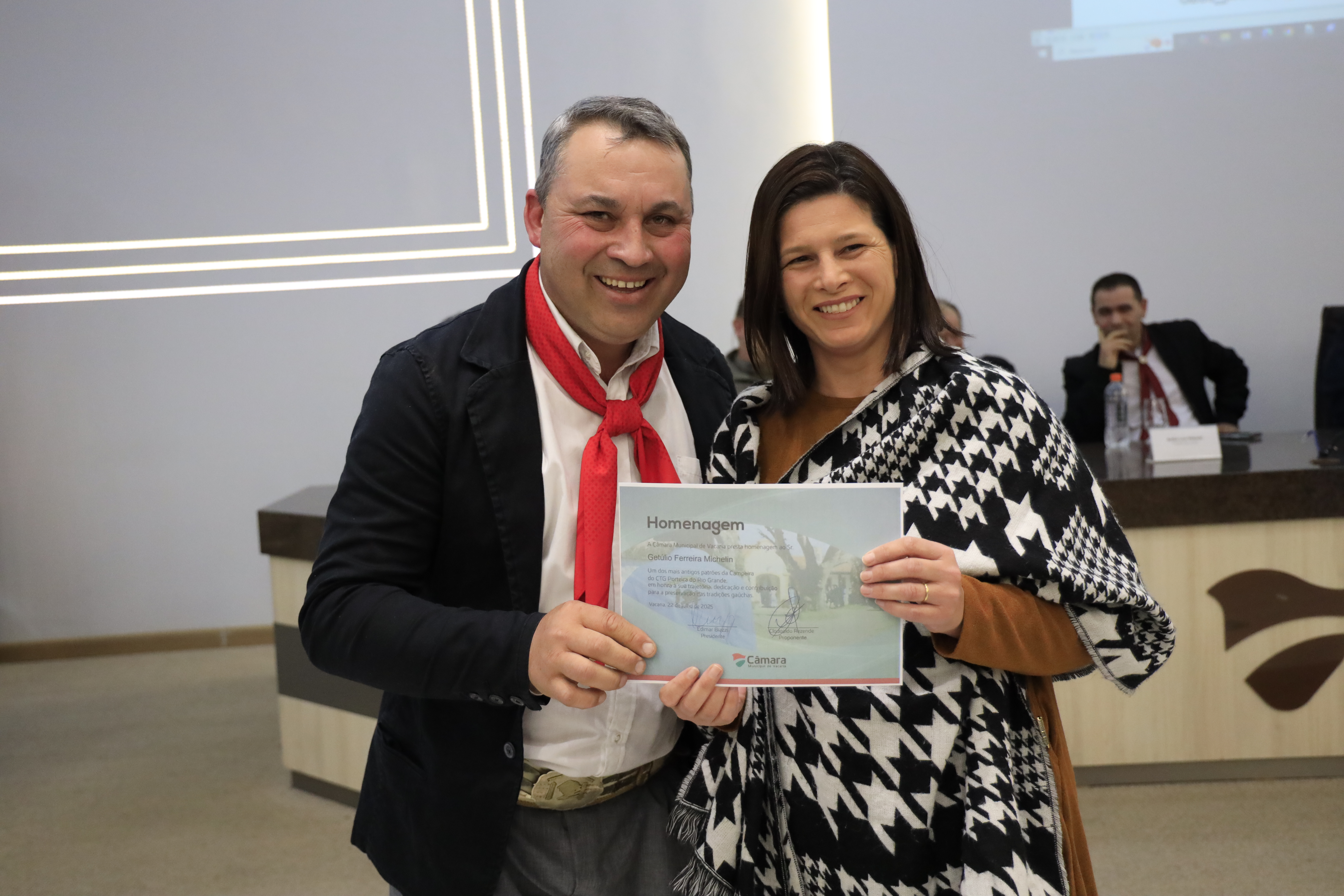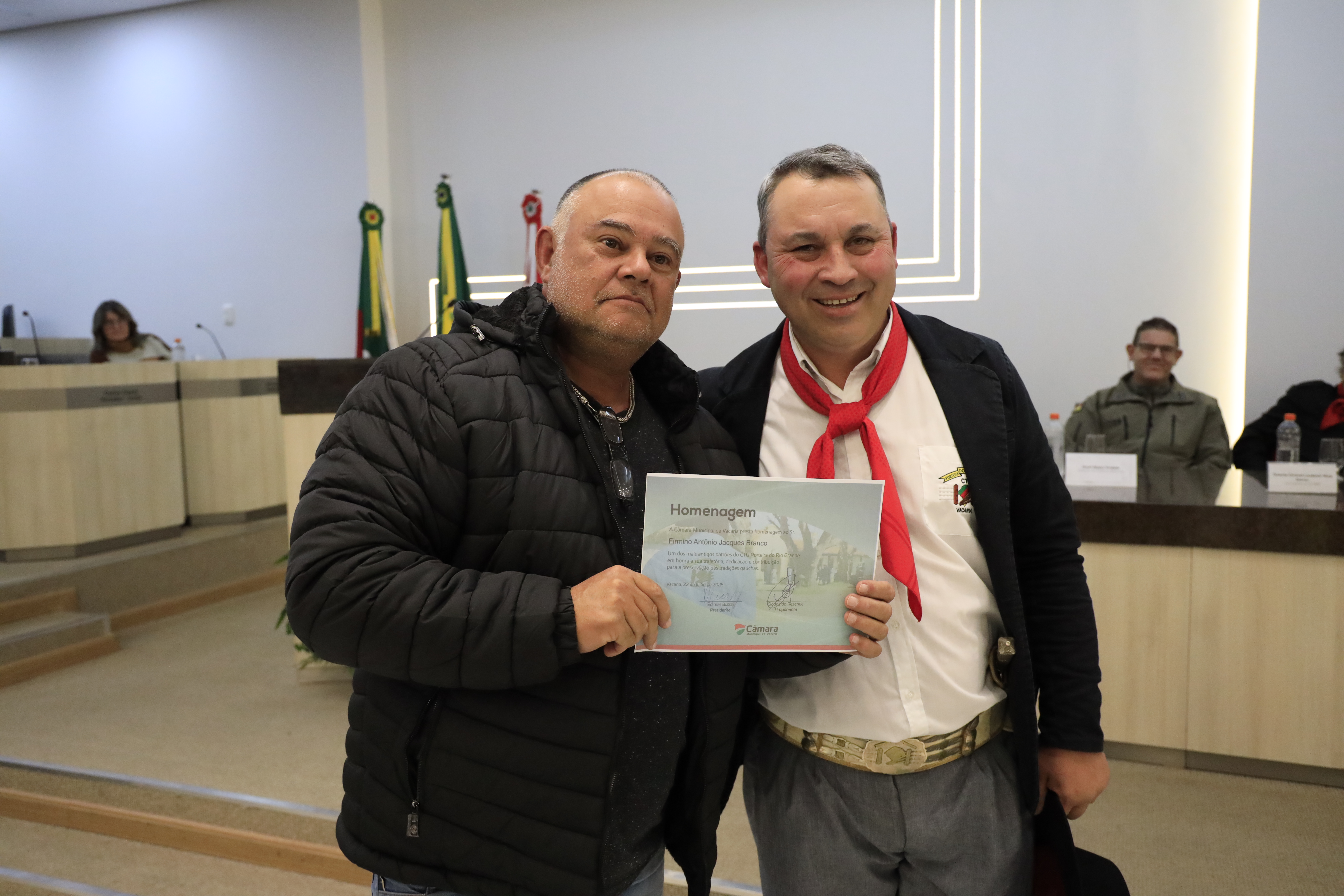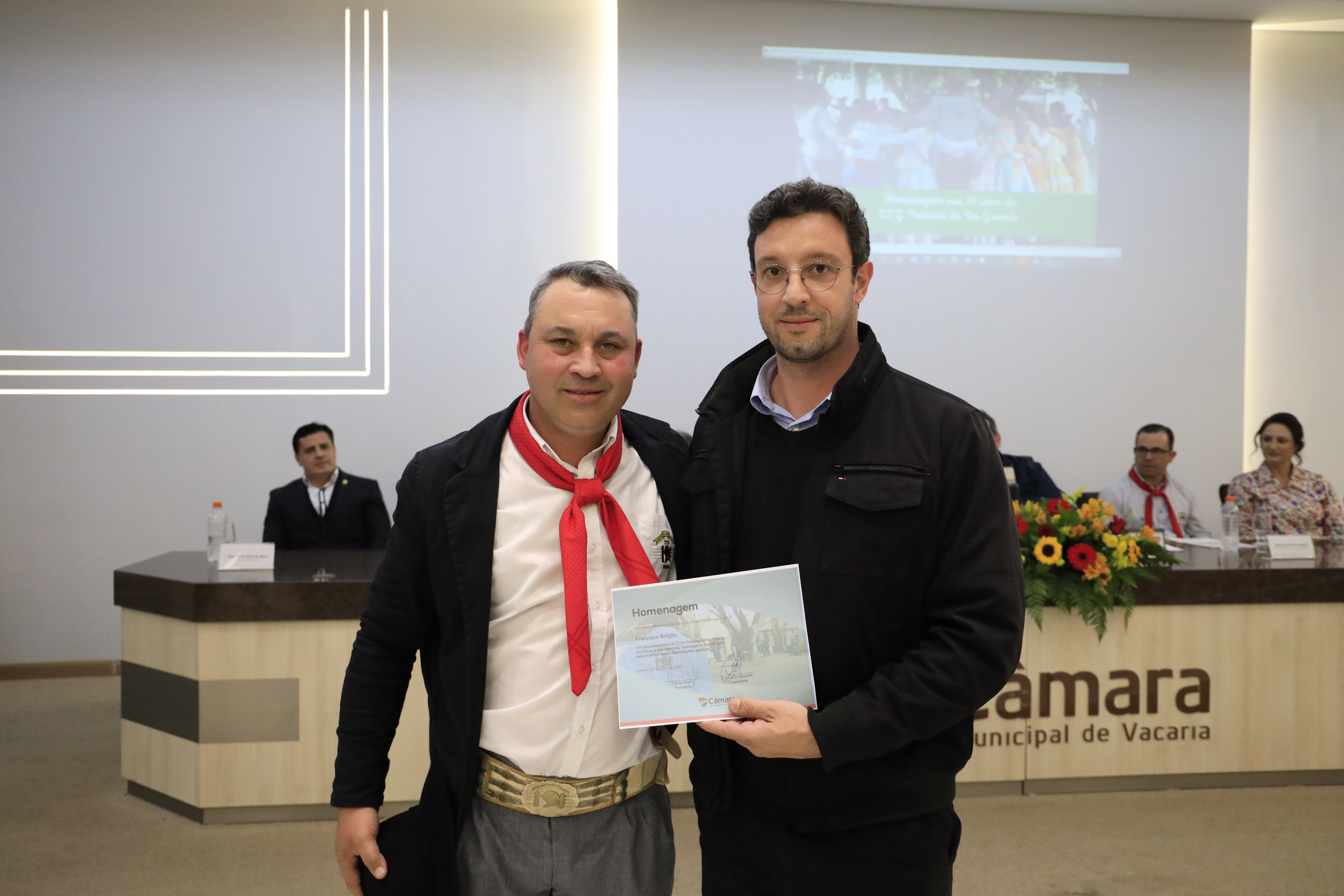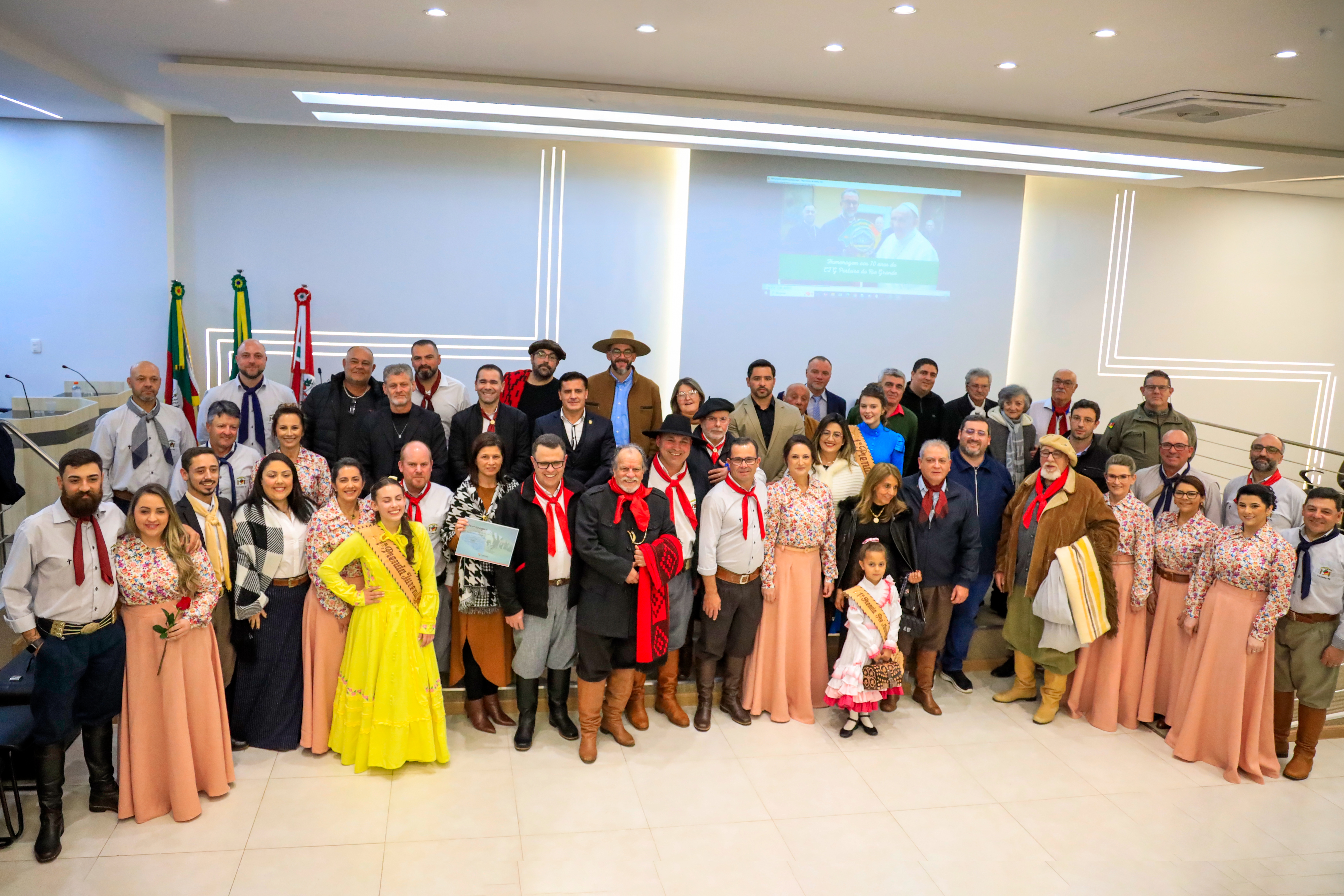 A Câmara Municipal realizou, nesta terça-feira, 22/07, uma sessão solene em homenagem aos 70 anos do CTG Porteira do Rio Grande. A cerimônia foi marcada por emoção, reconhecimento e reverência a uma das mais importantes entidades tradicionalistas do Rio Grande do Sul. Proposto pelo vereador Pingo Rezende, o ato celebrou a trajetória do CTG fundado em 1955 e que, desde então, mantém viva a chama da cultura gaúcha nos Campos de Cima da Serra.
