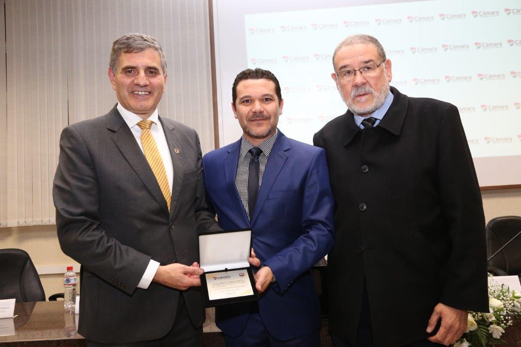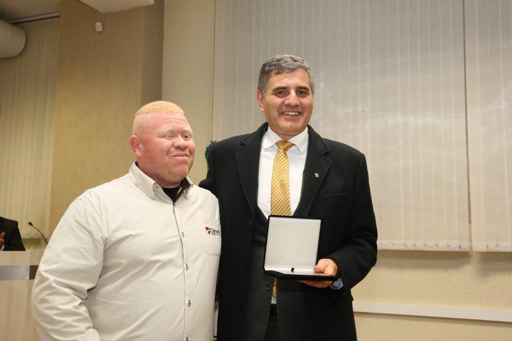 A Câmara de Vereadores de Vacaria presenteou a instituição com uma placa comemorativa a data que foi entregue ao Vice-Reitor pelo funcionário concursado da Câmara e aluno da UCS, Vantuir Gregório Freire.