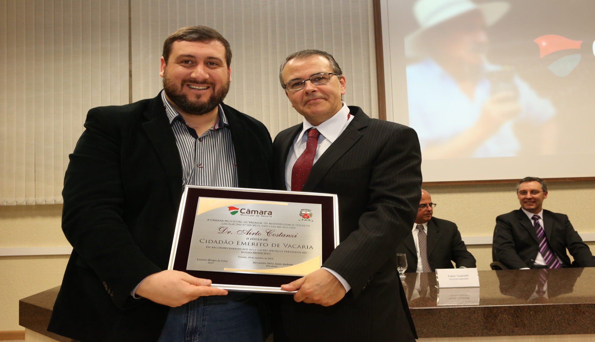 Foram proponentes dos títulos honoríficos os Vereadores Leandro Borges de Lima(PMDB), Antonio Soares de Almeida(PPS) e Amadeu de Almeida Boeira(PSDB), que fizeram uso da palavra enaltecendo os valorosos serviços prestados pelos homenageados à comunidade de Vacaria.