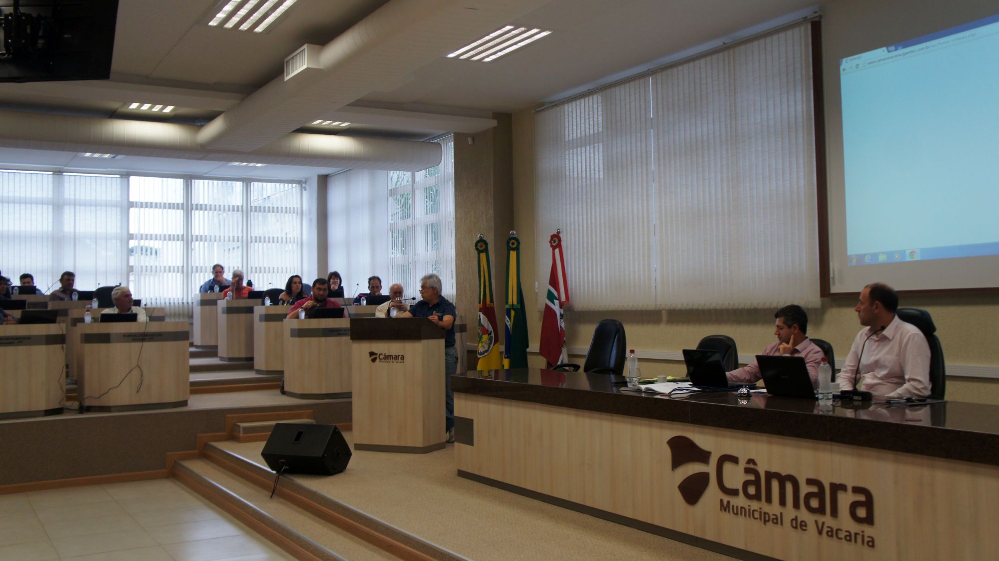 A primeira sessão ordinária do mês de dezembro abriu espaço para a manifestação da comunidade vacariense através daTribuna Livre, ocupada pelo Professor Osmar Emilio Mussato da Escola Estadual Bernardina Rodrigues Padilha. O professor Mussato juntamente com os alunos Edson Carlos de Almeida, Jair Carlos Kaefer e Rafael Vargas da Silva, participaram recentemente da Feira Estadual de Ciência e Tecnologia da Educação Profissional, na cidade de Gravatai, onde conquistaram o 1º lugar com o projeto de viabilidade da implantação do sistema de lâmpadas LED, com placas solares fotovoltaicas na iluminação pública de Vacaria.