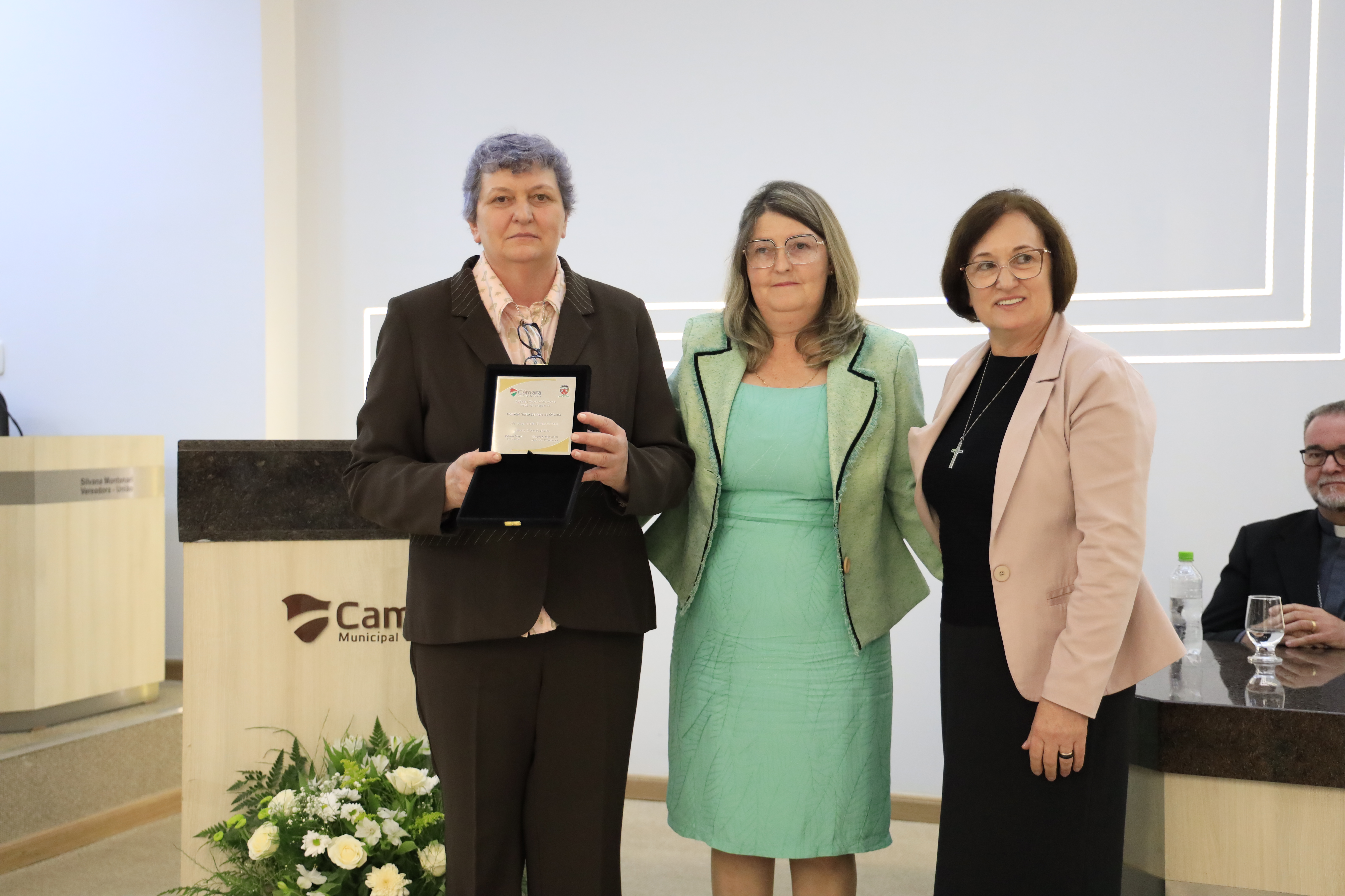 Vereadora Silvana entregou placa as irmãs Adelide Canci e Rita Tessaro | Crédito: Saulo Vargas