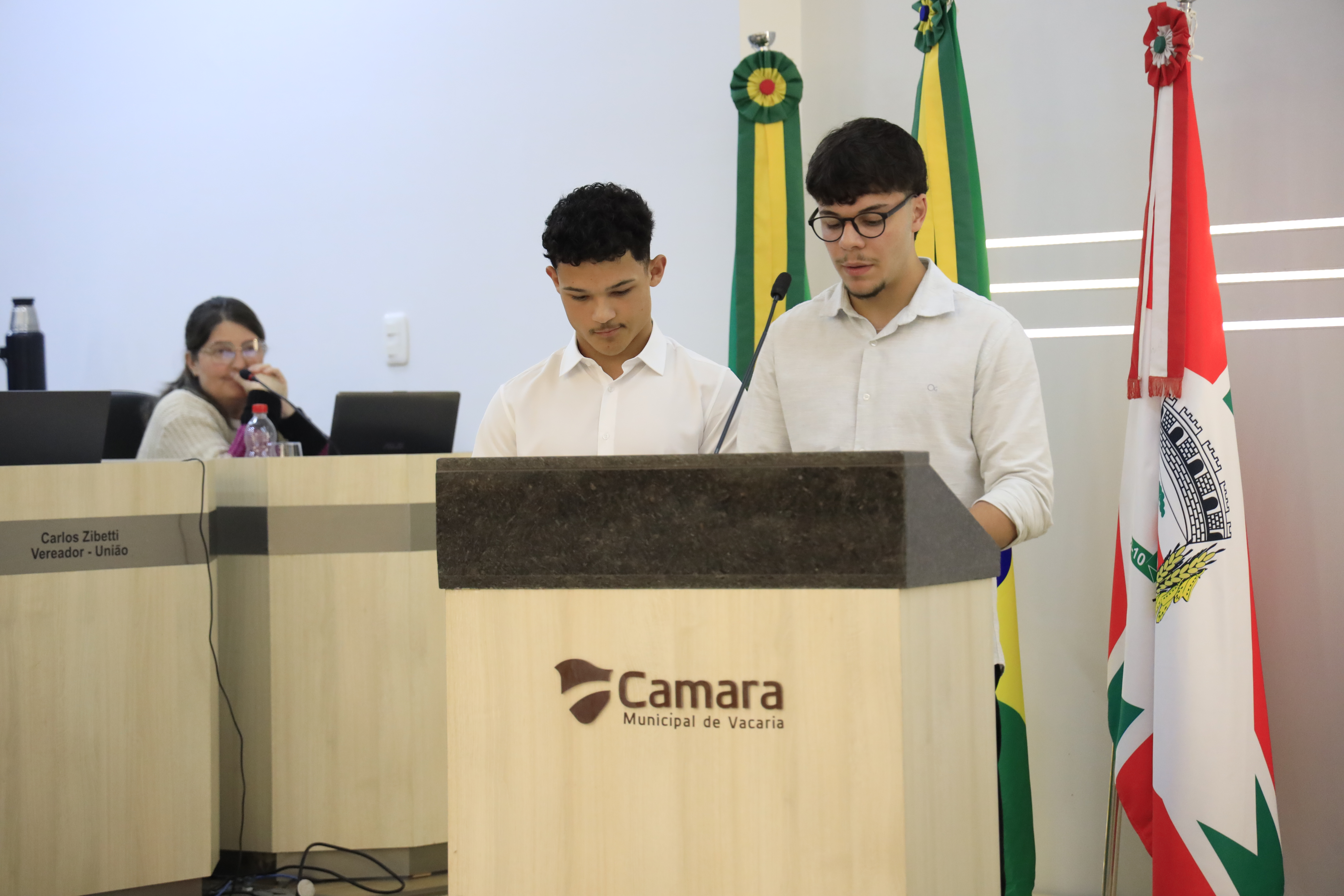 Vereadores prestou homenagem aos alunos Ariel da Silva Carvalho e Túlio Pelin Gonçalves, do Instituto Estadual de Educação Irmão Getúlio
