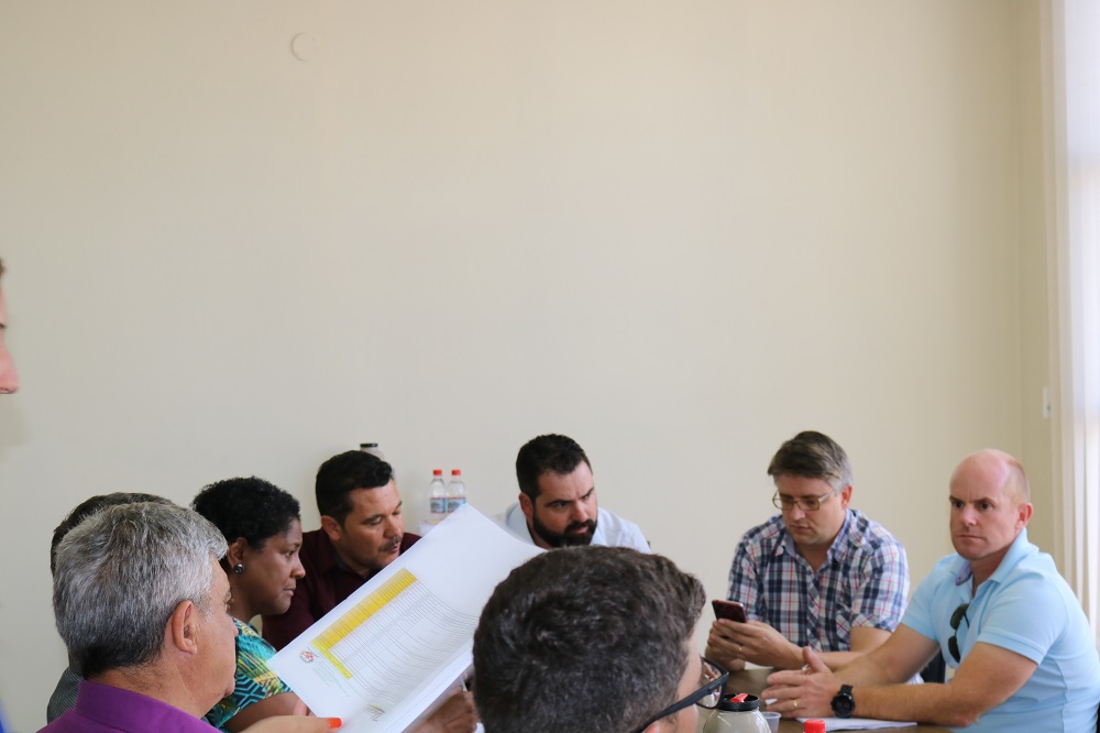 Nesta terça-feira (05), os integrantes da Mesa Diretora da Câmara, vereadores e assessores reuniram-se na sala da Presidência com o Secretário Municipal de Planejamento e Urbanismo, João Alfredo Acauan Filho e com o Secretário Municipal de Desenvolvimento Social, Aracy da Silva Almeida, acompanhados da Assessora Técnica Rosi Bonella, do Assessor Contábil Igor Coelho Venzon e do Assessor Financeiro Darli Carlos Spanholo. Na pauta do encontro os projetos que tramitam no Legislativo e os planos de investimentos da Administração em pavimentação.